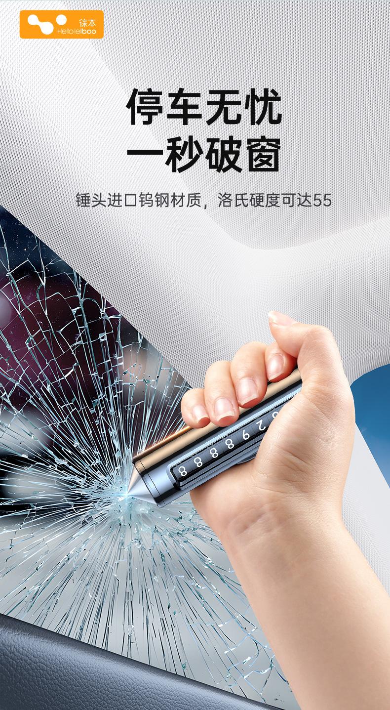 Martillo de seguridad para estacionamiento temporal de automóviles, matrícula de automóvil en movimiento, número de automóvil, rompeventanas de emergencia, dispositivo creativo multifuncional de retención de números