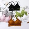 Sujetador de copa triangular con tirantes finos roscados, espalda en forma de U grande, sin costuras, con espalda hueca y sin aro de acero para mujer