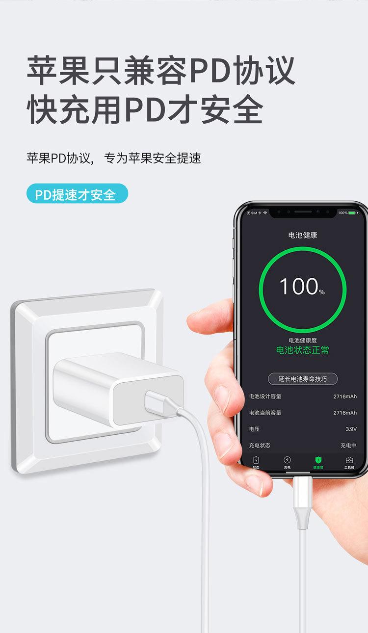 Cable de datos Apple tipo C de 20 W, cable de carga Apple, Huawei Fast Rush, cable de datos USB para teléfono móvil de carga rápida PD aplicable.