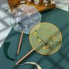 Abanico de baile corto de bambú personalizado, estilo chino, estilo antiguo de la dinastía Han, plegable, tallado, artesanal, grande, para publicidad