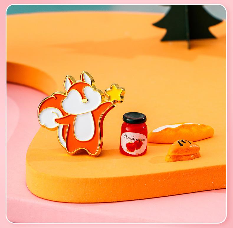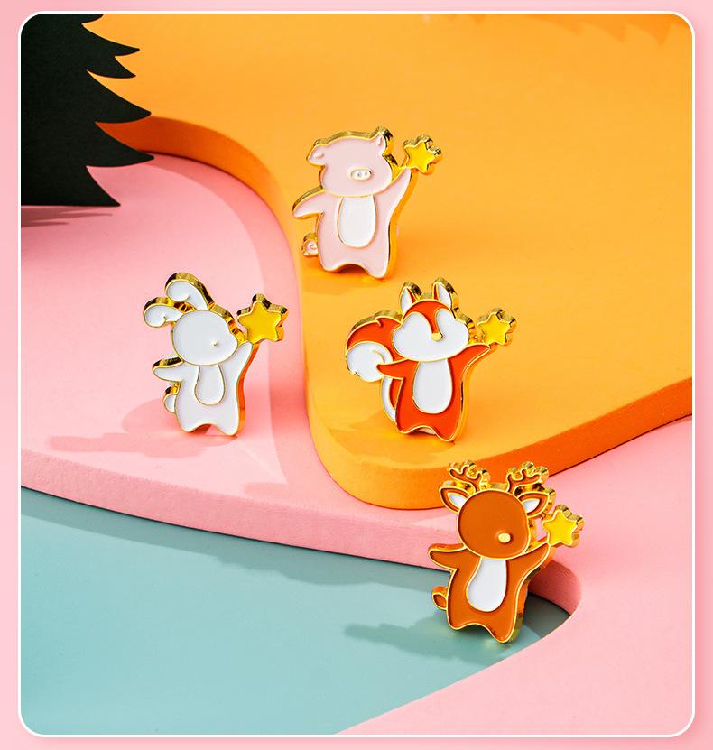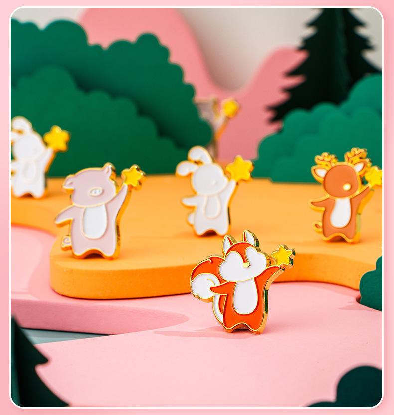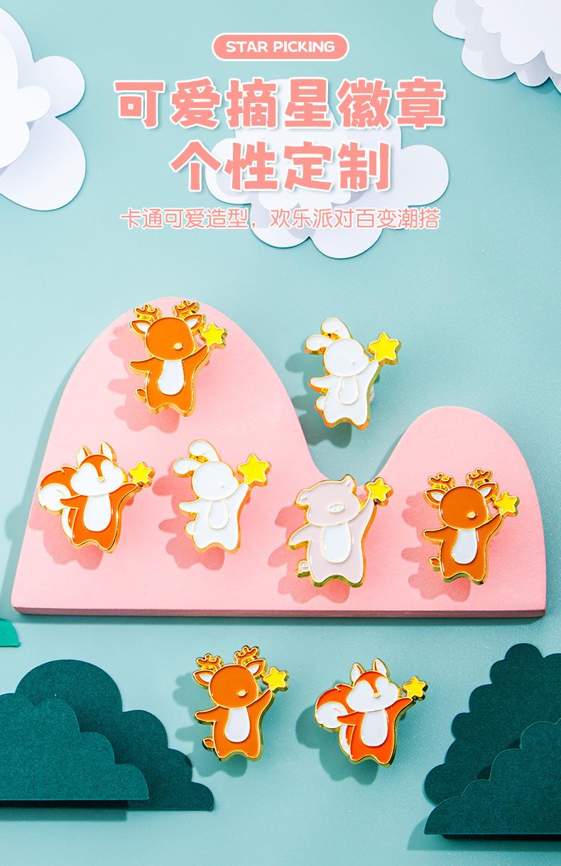 Pin de dibujos animados lindo de animal pequeño recogiendo estrellas Regalo del Día del Niño Broche accesorios caja de regalo de Zorro pequeño