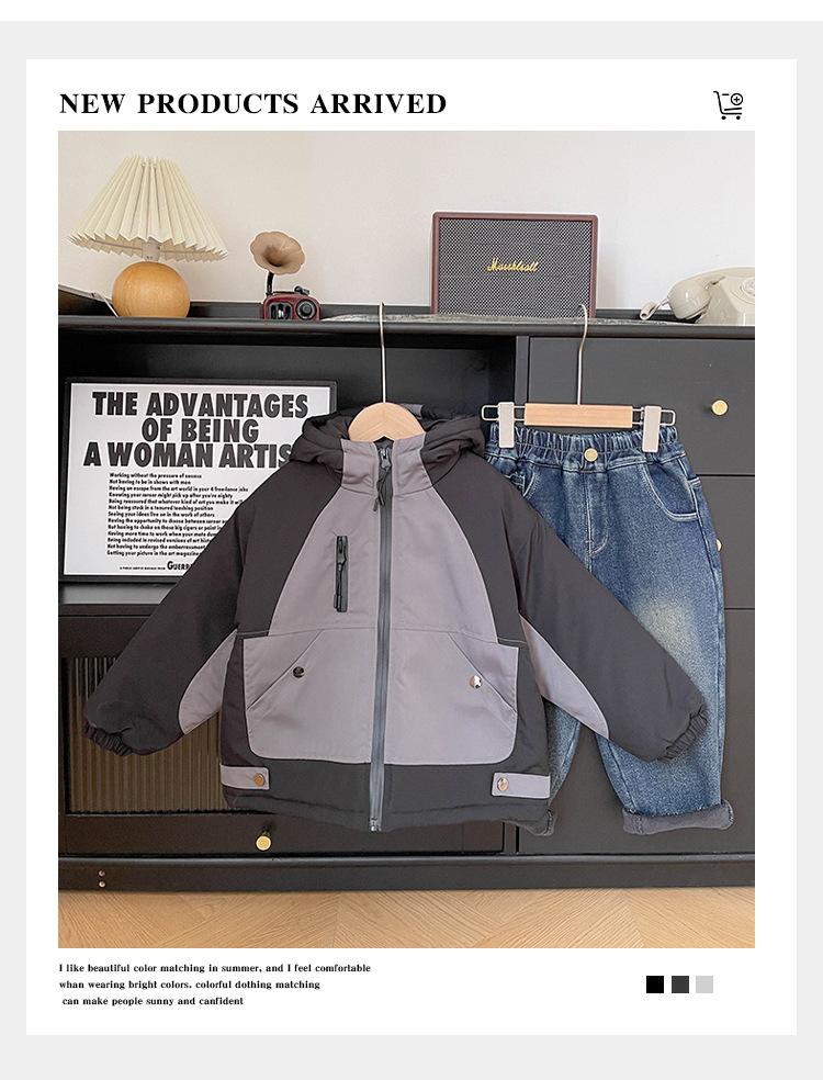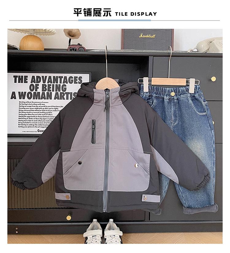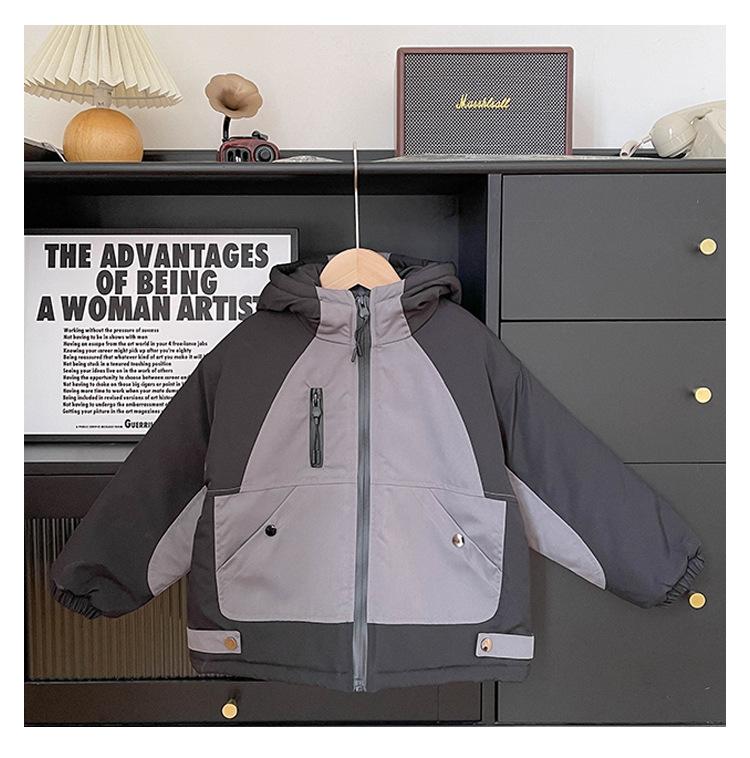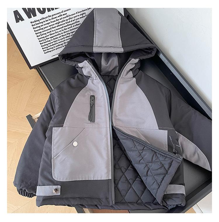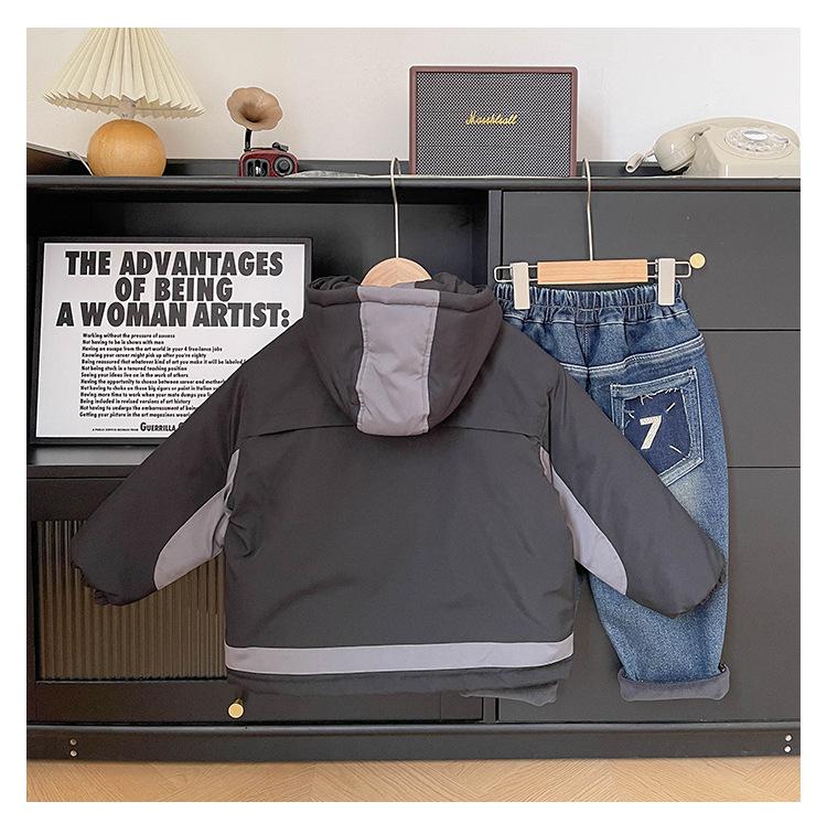 Xianao 2023 Invierno nuevo ropa para niños ropa acolchada de algodón para niños chaqueta deportiva coreana con capucha color en contraste ropa acolchada de algodón para niños moda