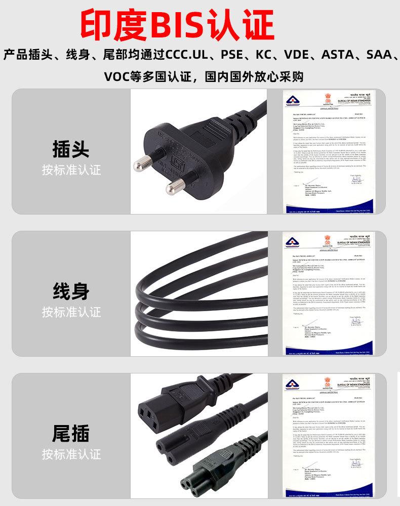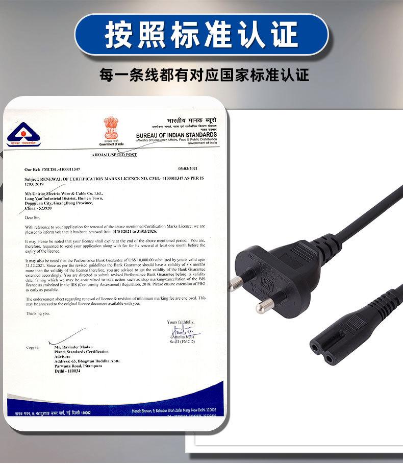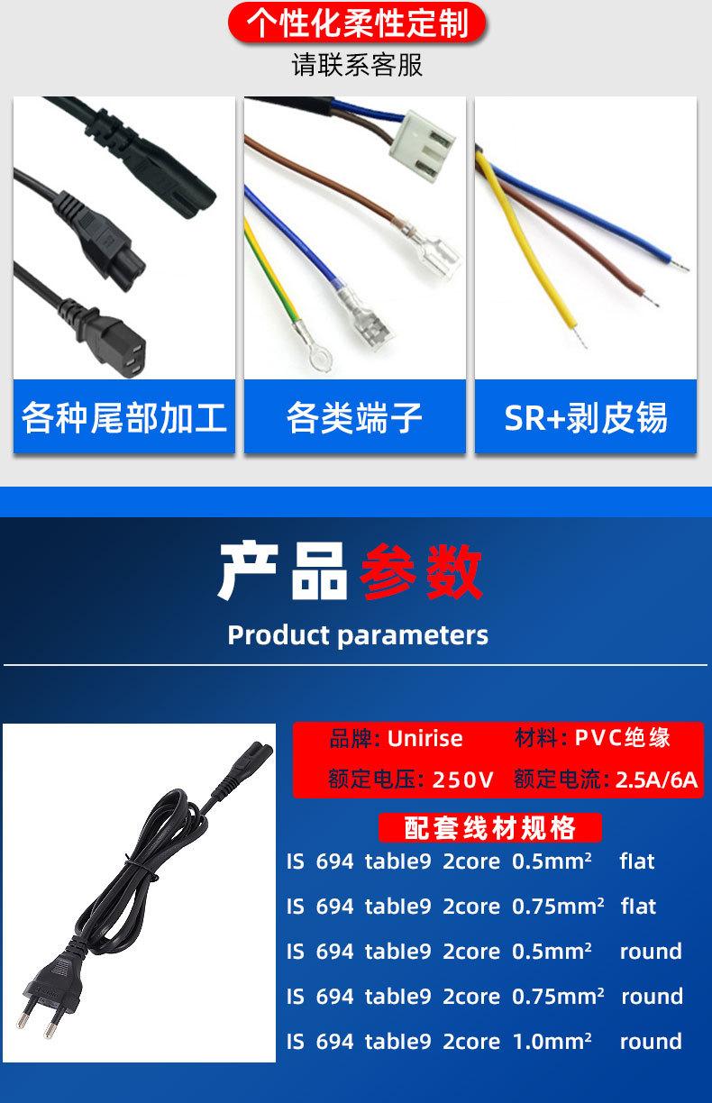 Cable de alimentación personalizado de Sudáfrica, pequeño, de India, de dos núcleos, ocho colas/colas desnudas. Cable de alimentación personalizado de Indonesia, de dos enchufes.