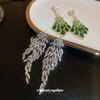 Pendientes de borla geométrica con forma de hoja de pluma de circonita y aguja de plata, pendientes de temperamento de alta calidad de moda europea y americana, venta al por mayor para mujeres