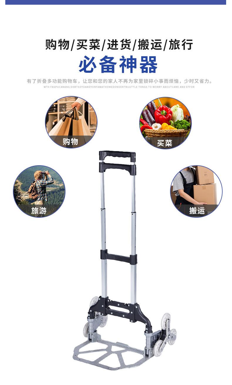 Carrito de transporte portátil plegable de aleación de aluminio de cuatro ruedas transfronterizo, carrito móvil para el hogar