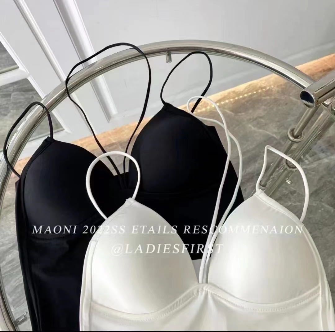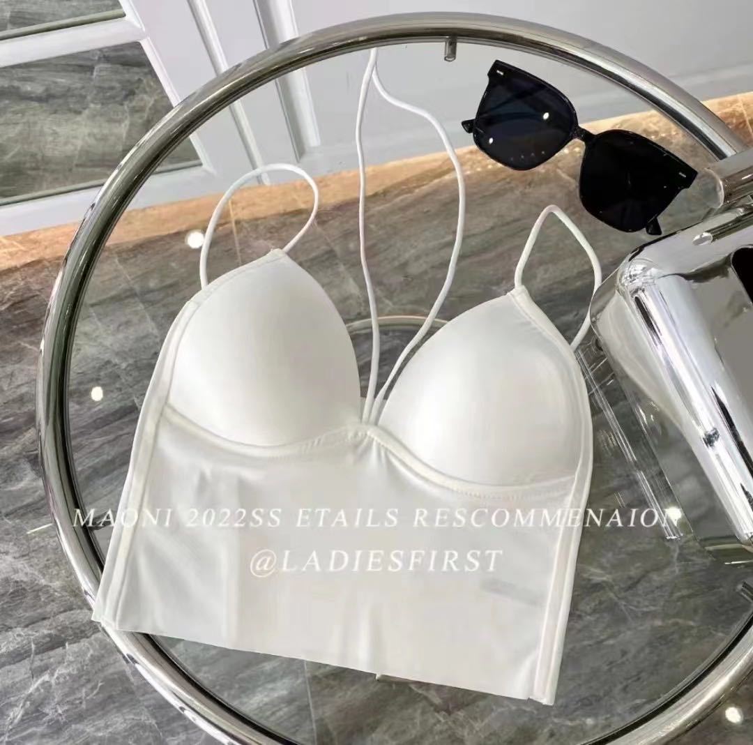 Chaqueta de chica sexy explosión de seda de hielo colgante cuello profundo V hermosa espalda al por mayor envuelto pecho desgaste base chaleco copa fija ropa interior mujeres