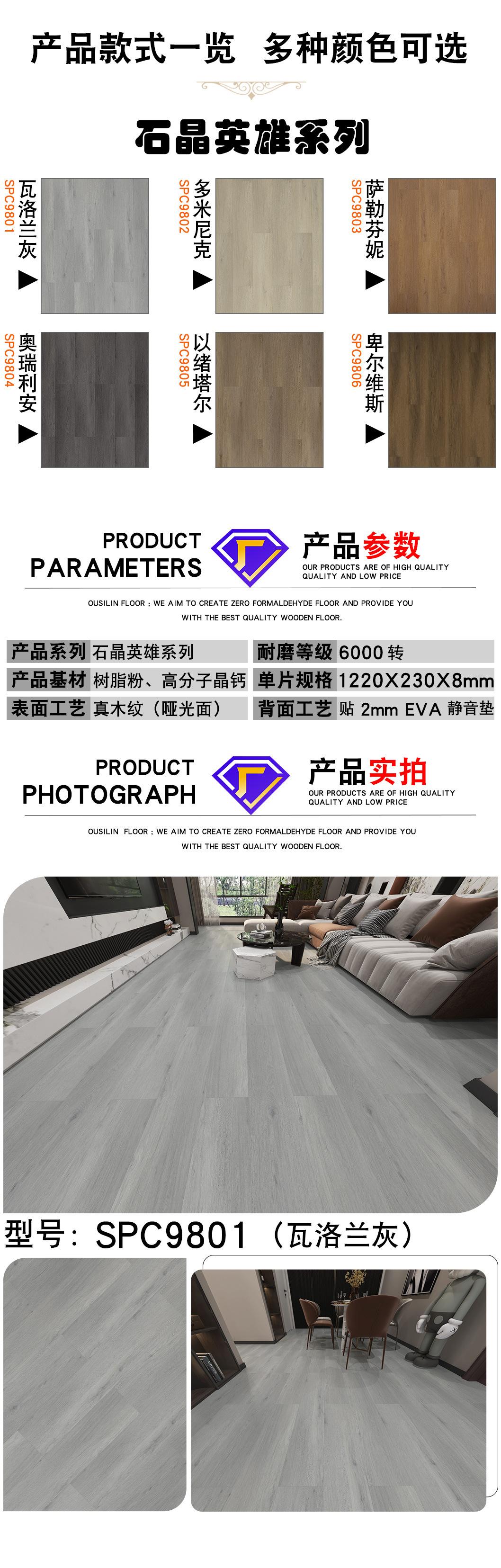 Suelo de cristal de piedra SPC de 10 mm de grosor, silencioso, de plástico, con cerradura, antideslizante, impermeable y resistente al desgaste, de PVC.