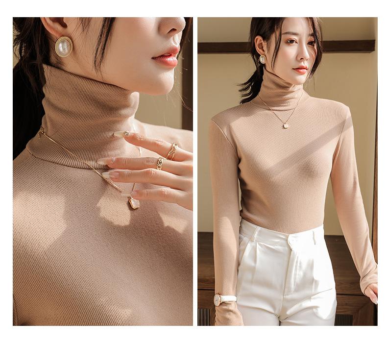 H516 Camiseta básica de cuello alto para mujer para otoño e invierno, estilo nuevo, ropa interior, moda elegante, térmico de fondo alto, ropa interior al por mayor