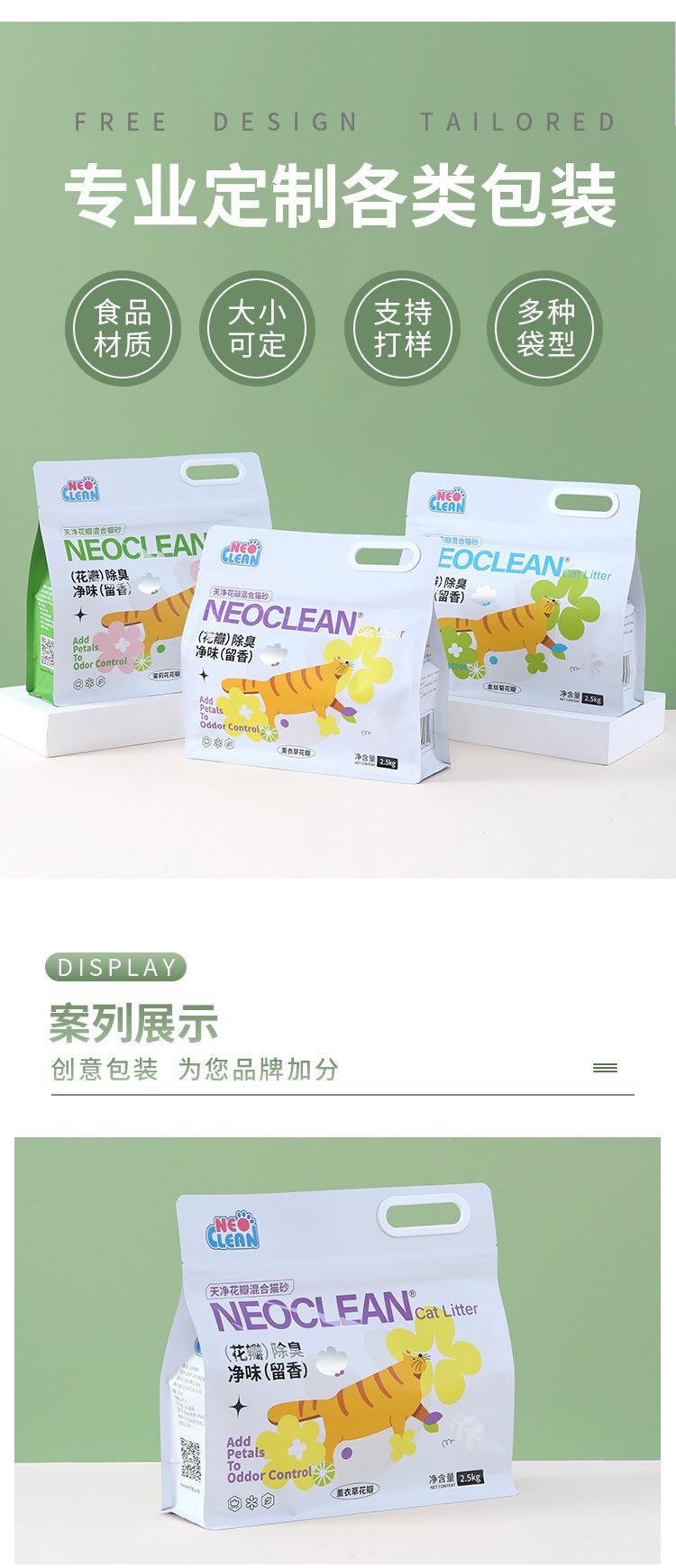 Bolsas de plástico con impresión personalizada, bolsas selladas, bolsas aluminizadas para alimentos, bolsas autosellables de ocho lados para arena para gatos.