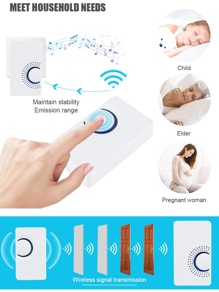 Timbre inalámbrico personalizado Xinhui Processing con control remoto digital de larga distancia para niños y ancianos.