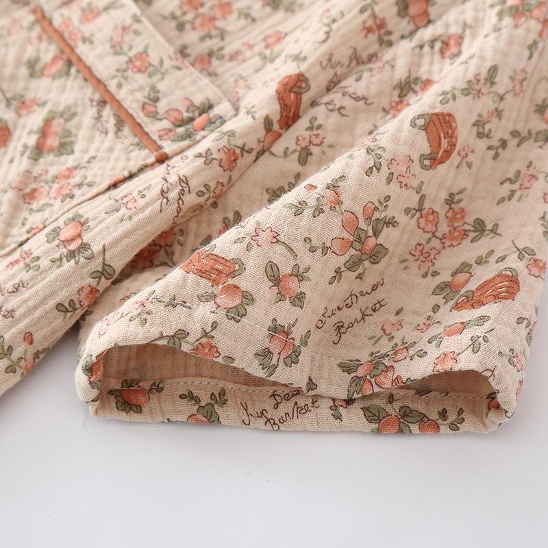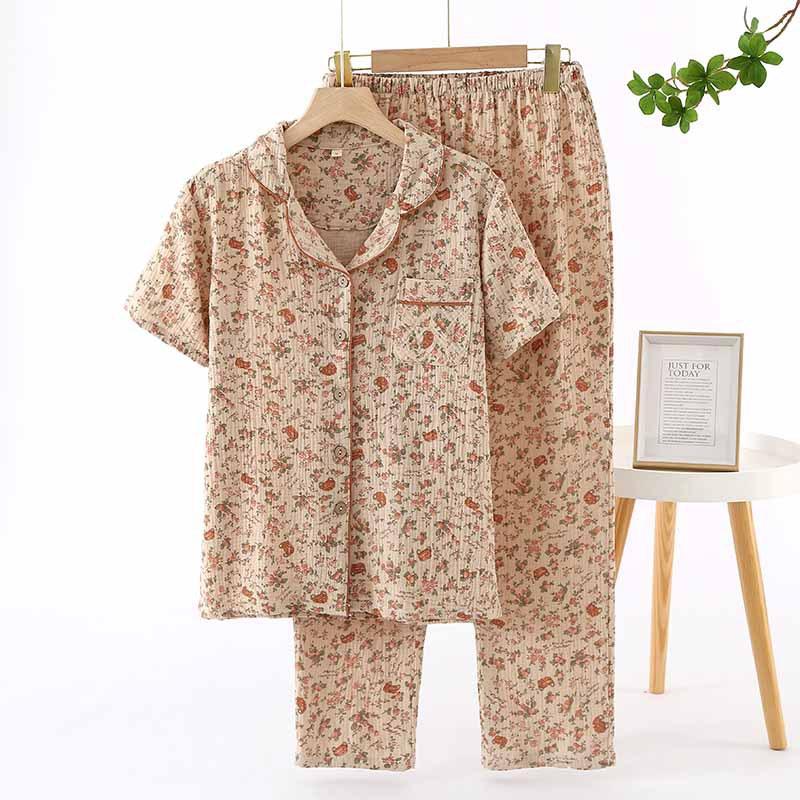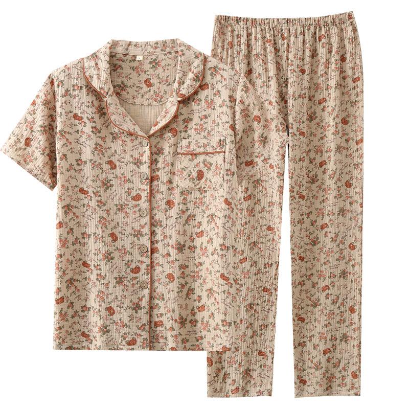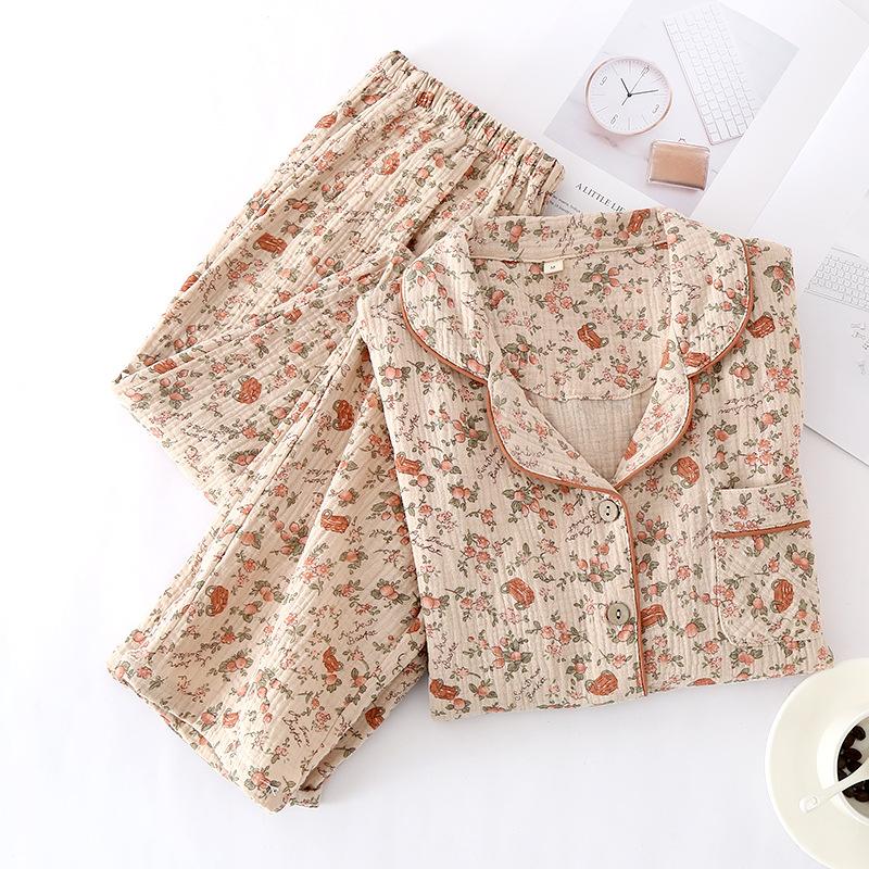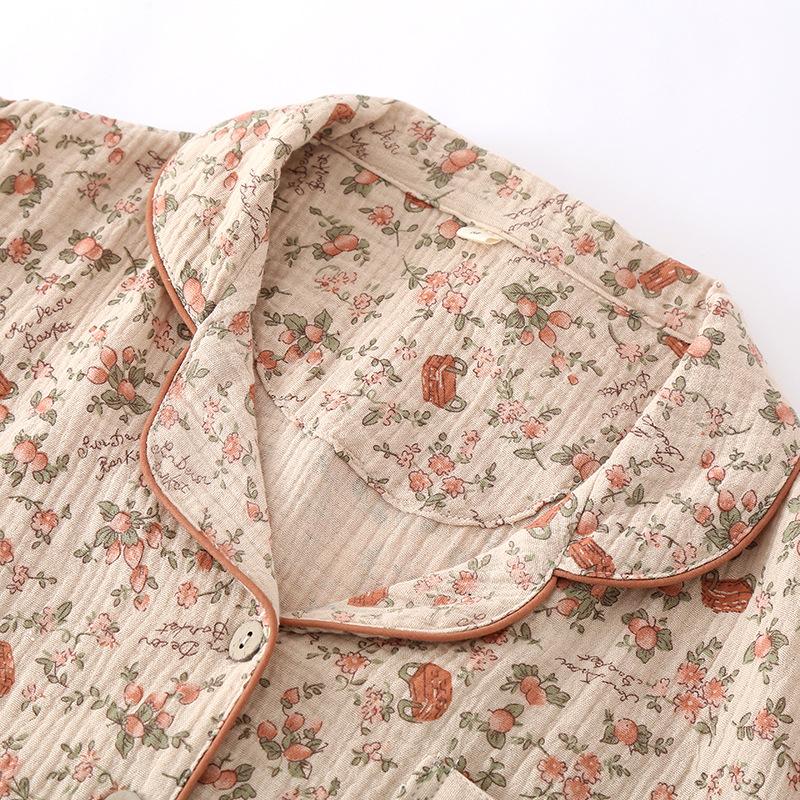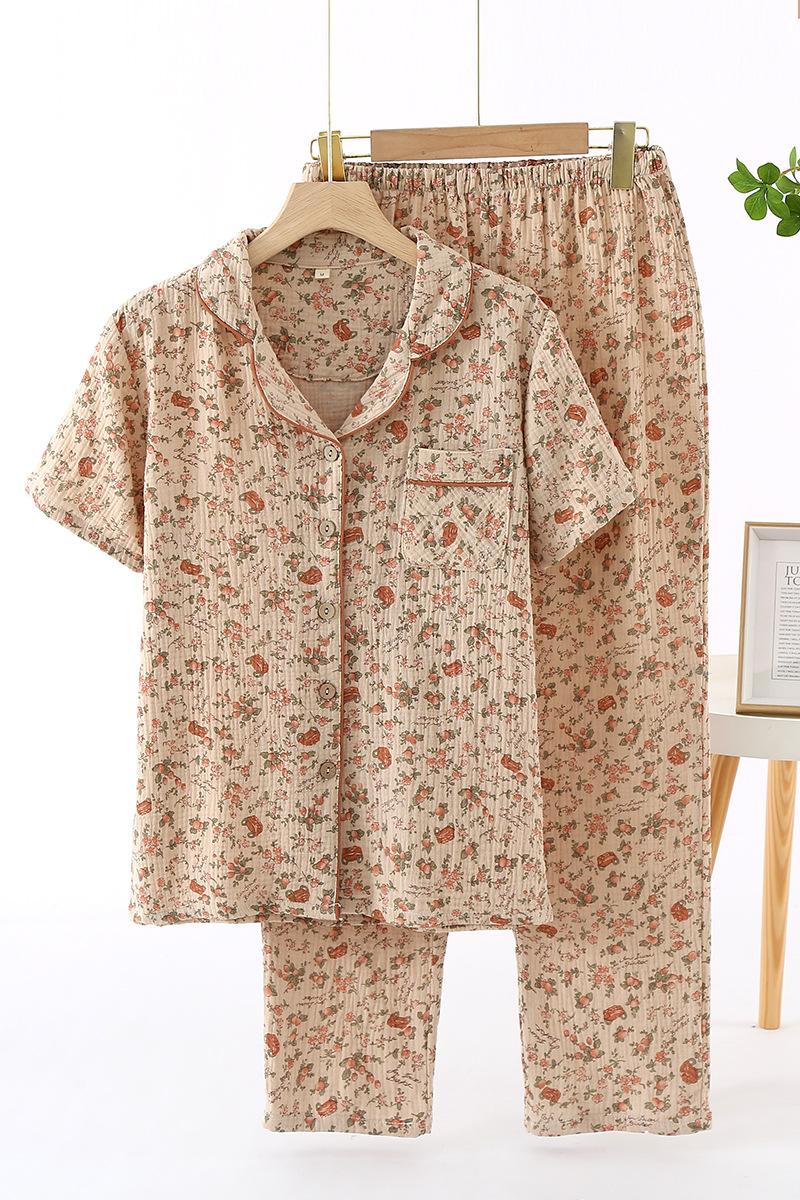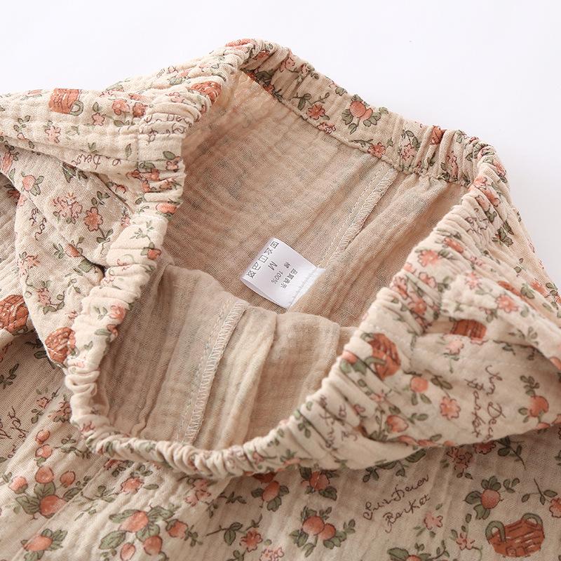 [Rose Manor] Pijama de gasa de algodón para mujer, nuevo, de primavera y verano, con estampado floral, pantalones de manga corta, ropa de casa, traje de verano