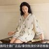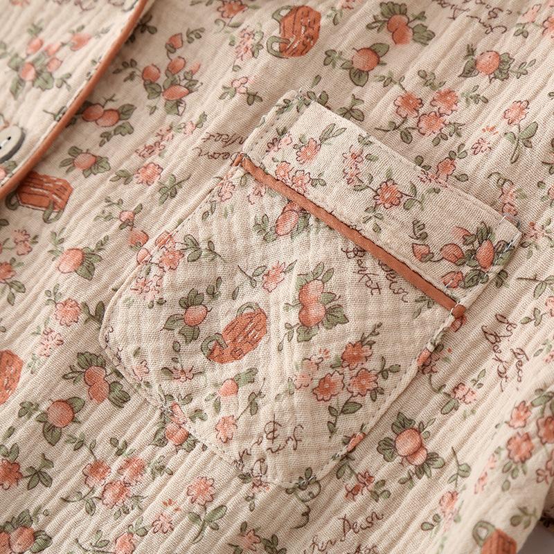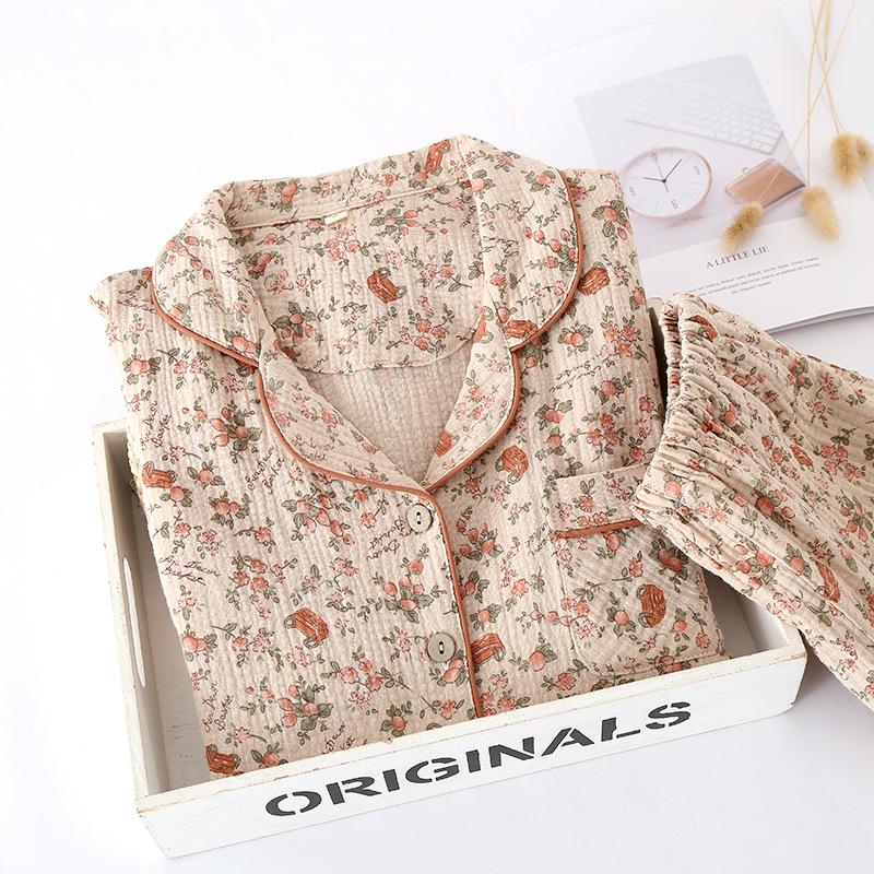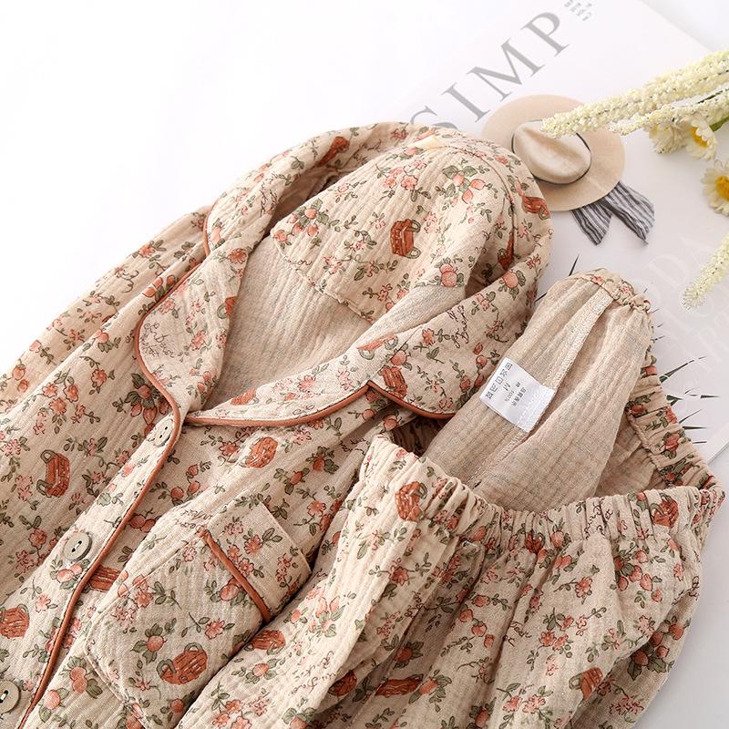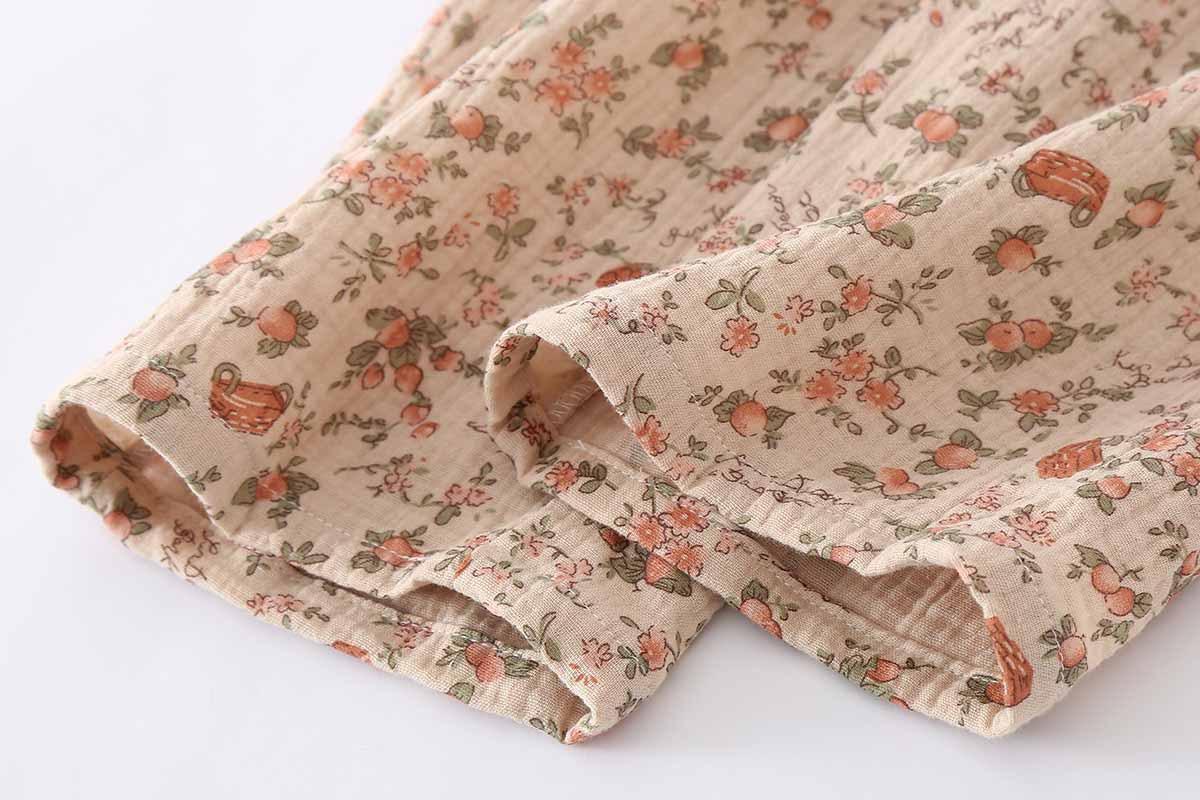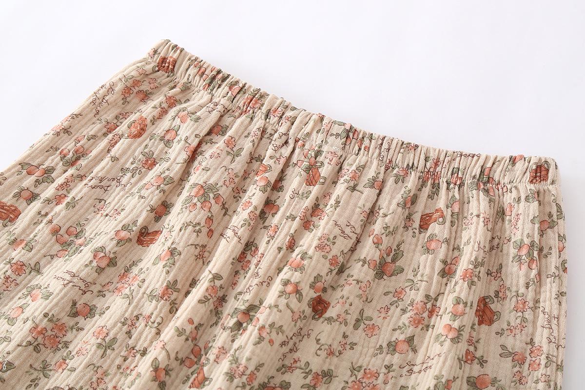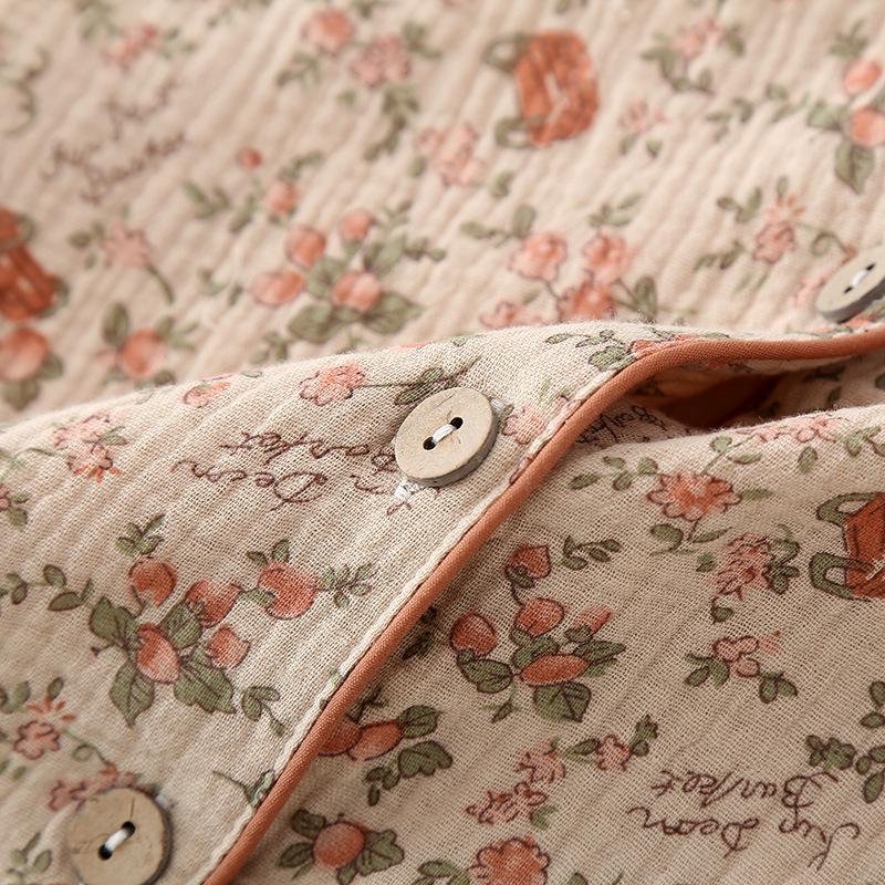[Rose Manor] Pijama de gasa de algodón para mujer, nuevo, de primavera y verano, con estampado floral, pantalones de manga corta, ropa de casa, traje de verano