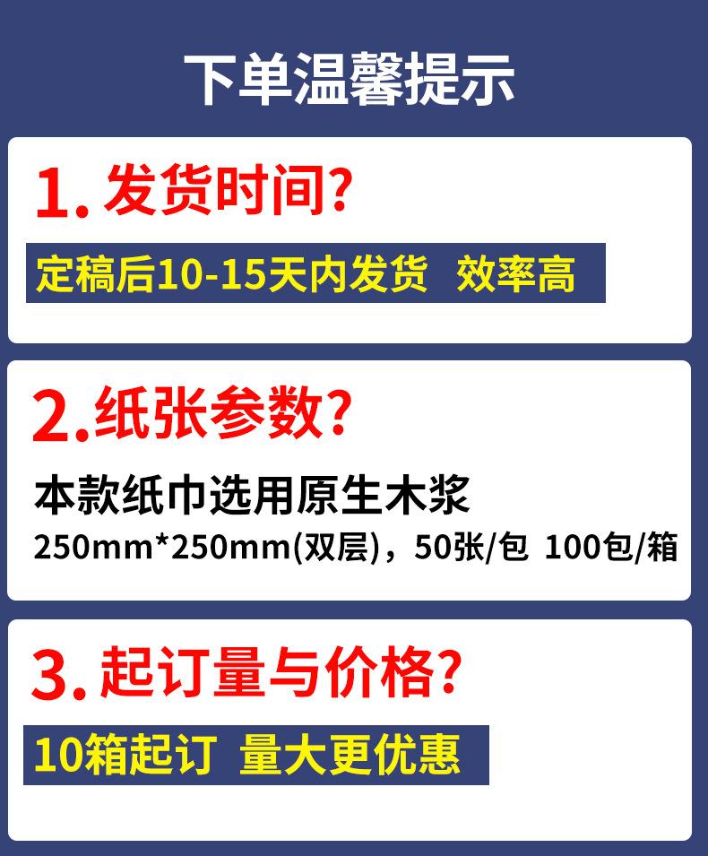 Toallas de papel personalizadas con logotipo imprimible, papel de seda cuadrado comercial independiente, pañuelos faciales para hoteles y restaurantes al por mayor.