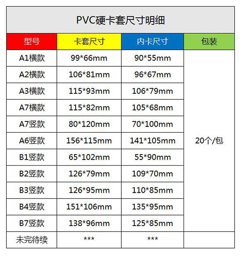 A1 horizontal (inner card 90*55mm), B1 vertical (inner card 55*90mm), A2 horizontal style (inner card 96*67mm)...