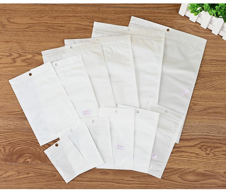 Bolsa de embalaje con cierre hermético de película de perla blanca, bolsa de plástico translúcido para guardar joyas y cosméticos, venta al por mayor