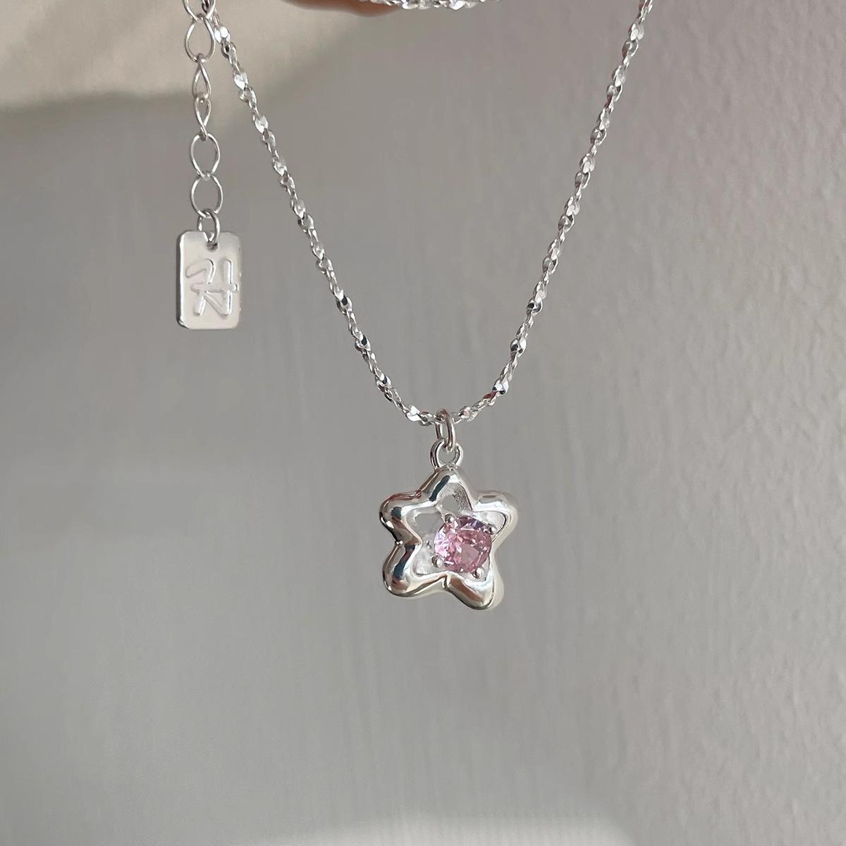 Collar de estrella de circonita rosa con diseño de nicho de estilo coreano para mujer, estilo frío, personalidad de moda, cadena de clavícula ligera de lujo que combina con todo y de alta calidad.