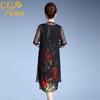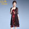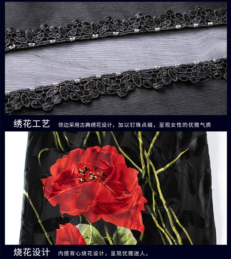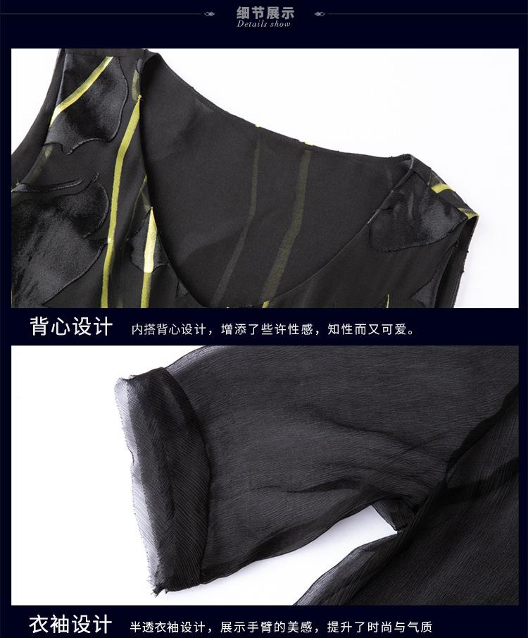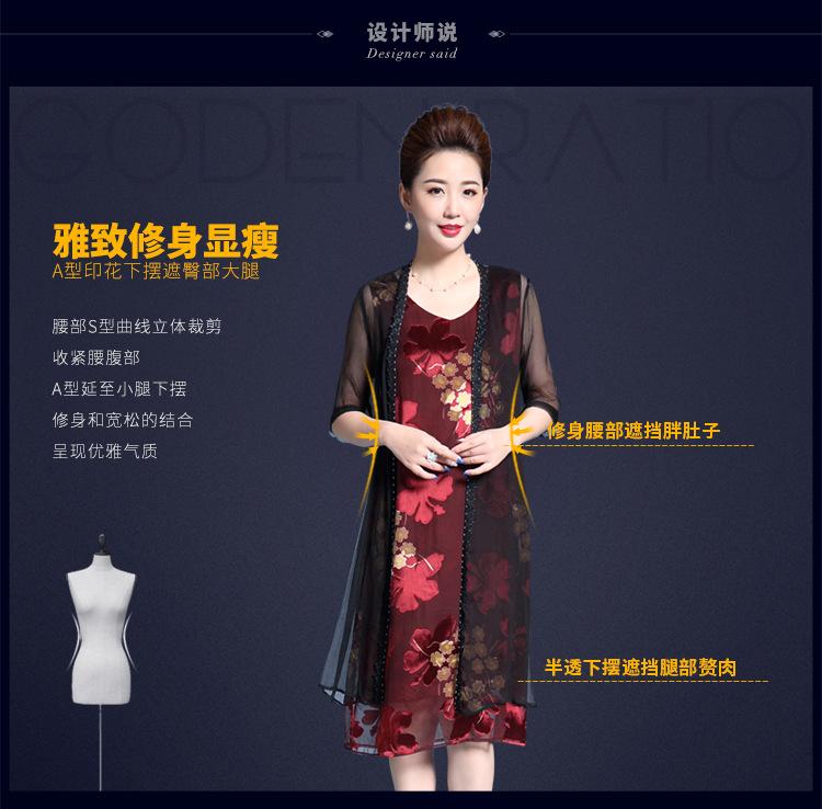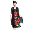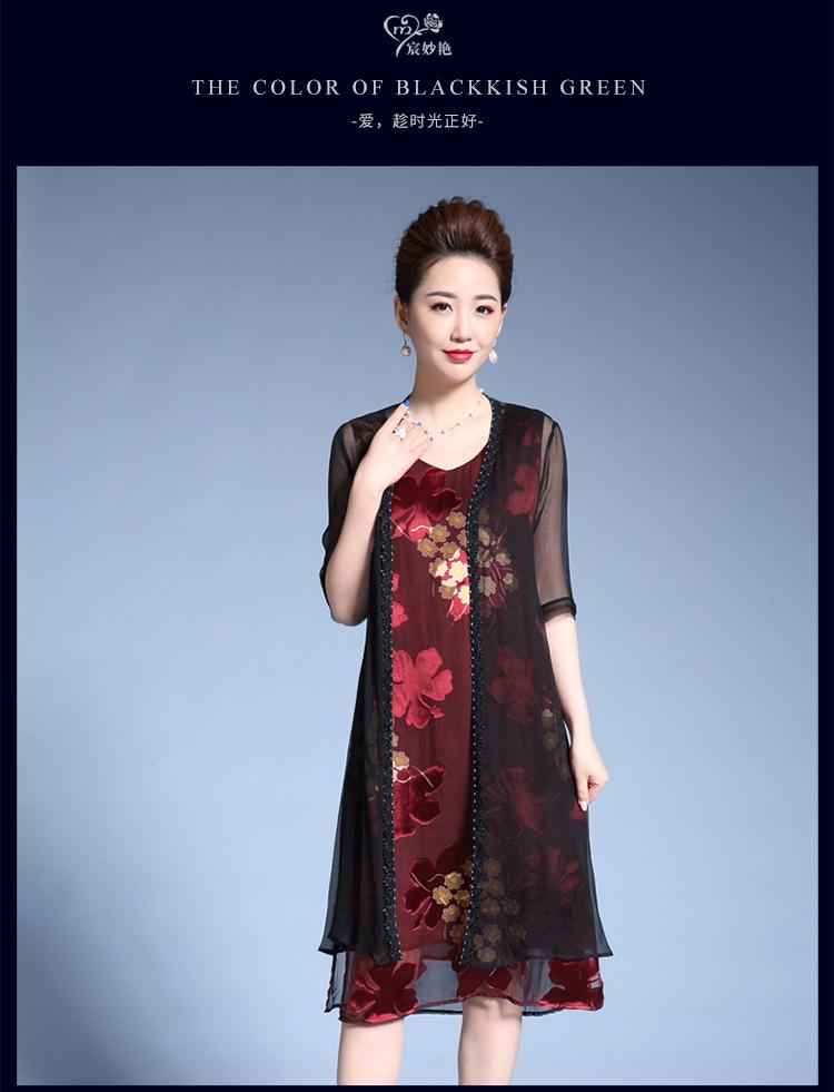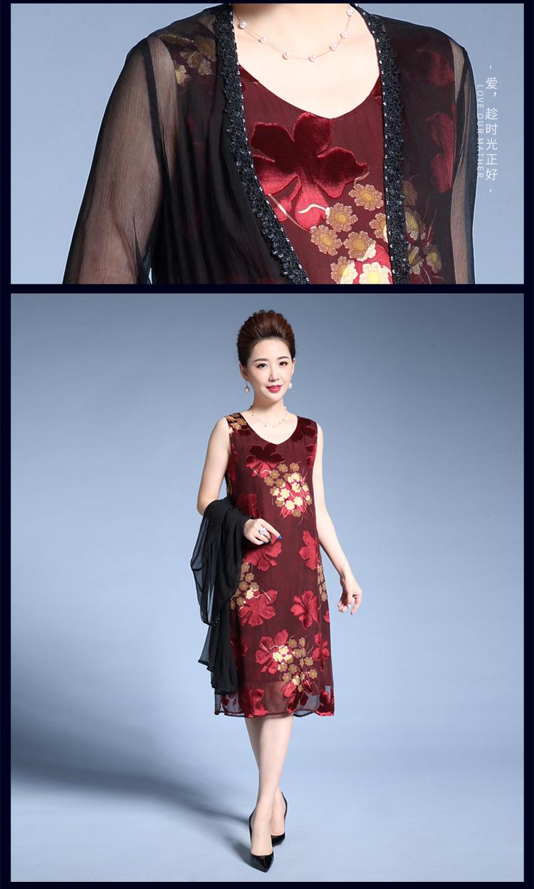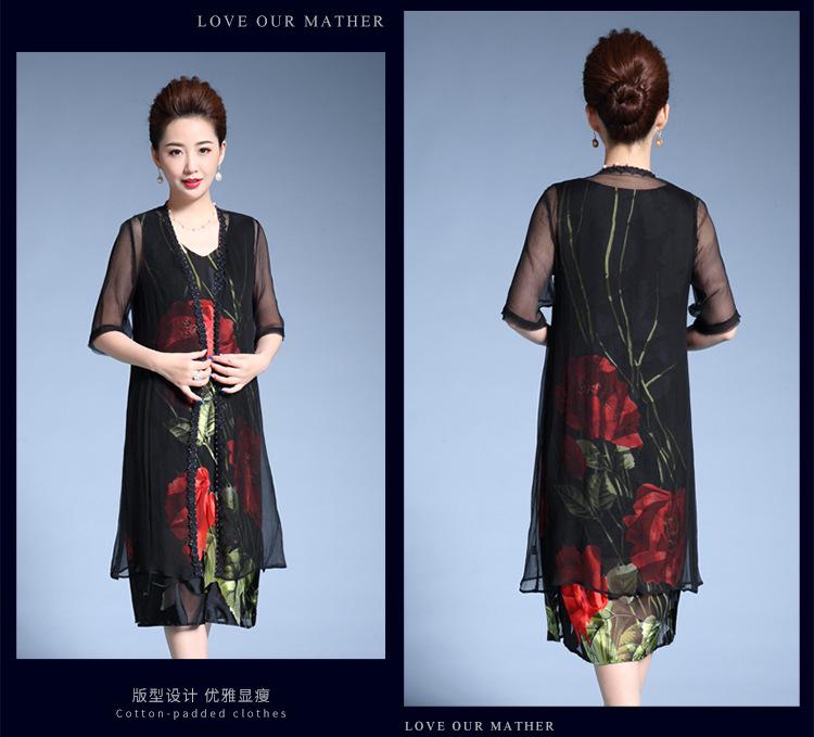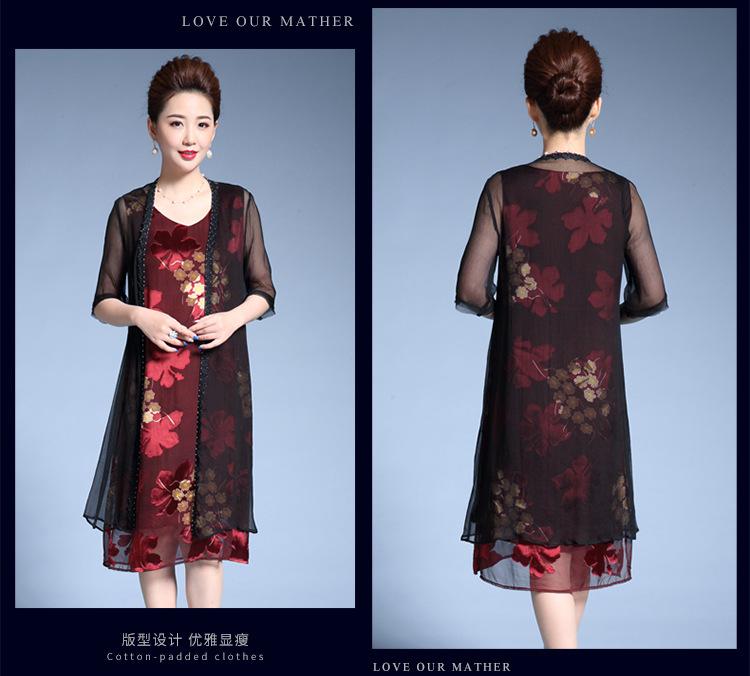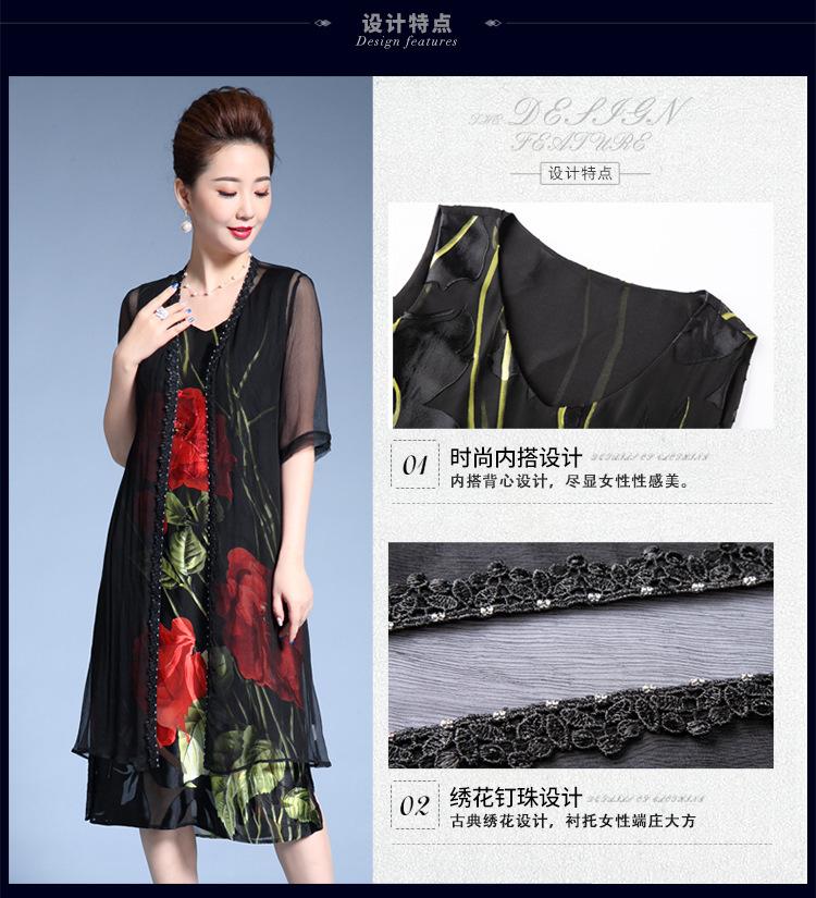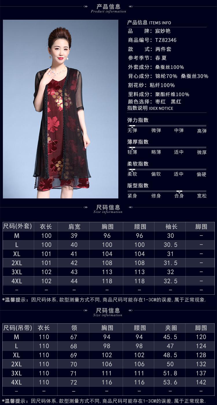 Vestido de Seda para Mujer de Talla Grande Moda Estampado Ajustado Adelgazante Seda de Morera Exterior Chal Vestido de Dos Piezas