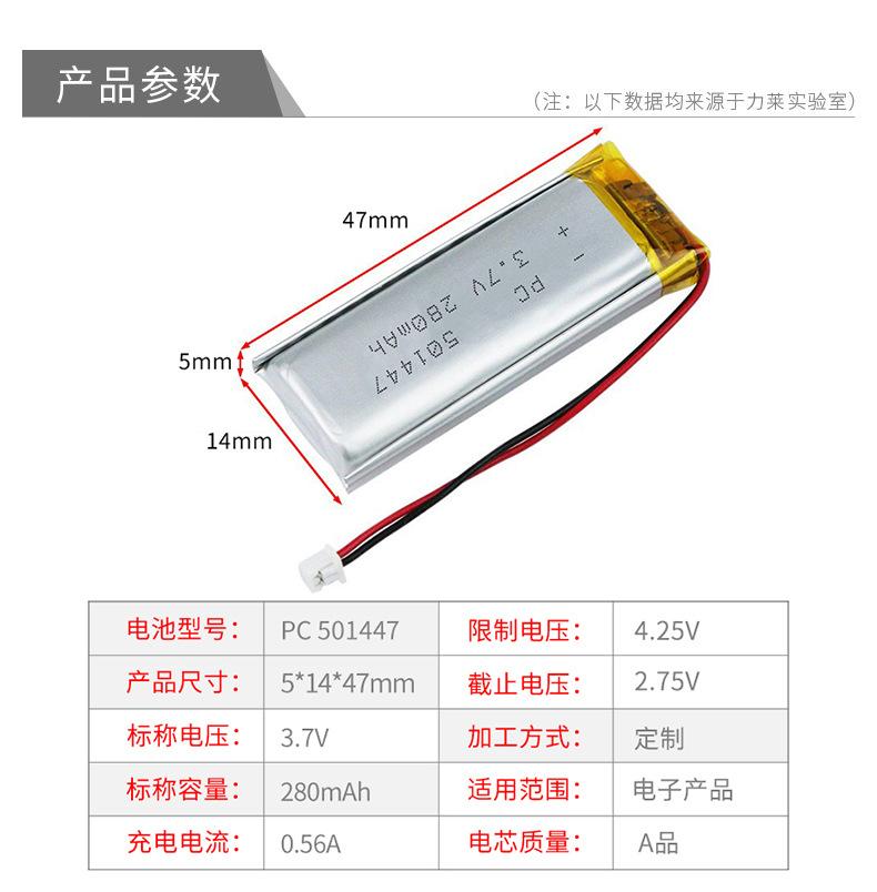 Batería de polímero de litio Li Lai de 3,7 V 501447, batería recargable de paquete blando con luz nocturna, venta al por mayor de fábrica.