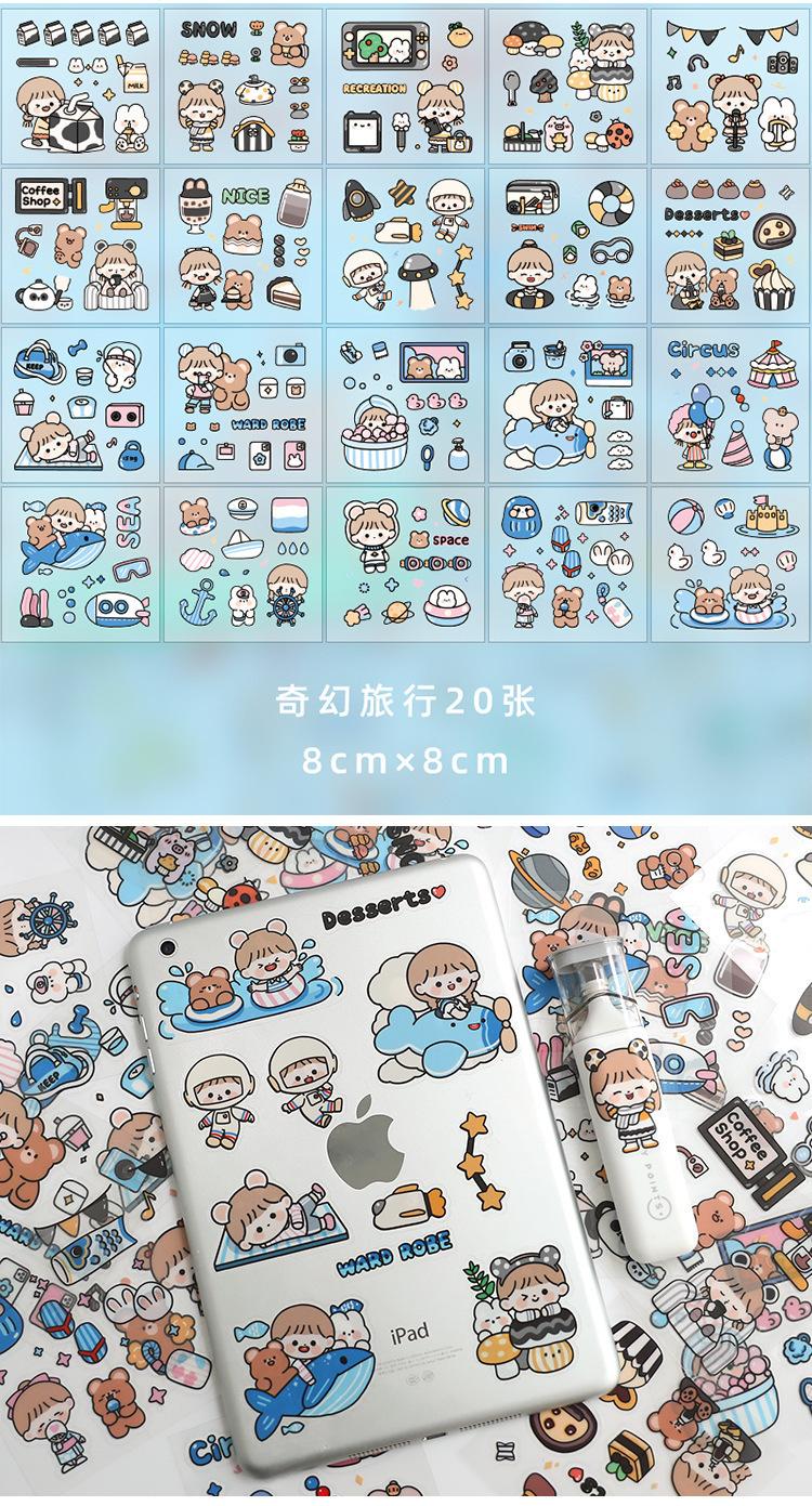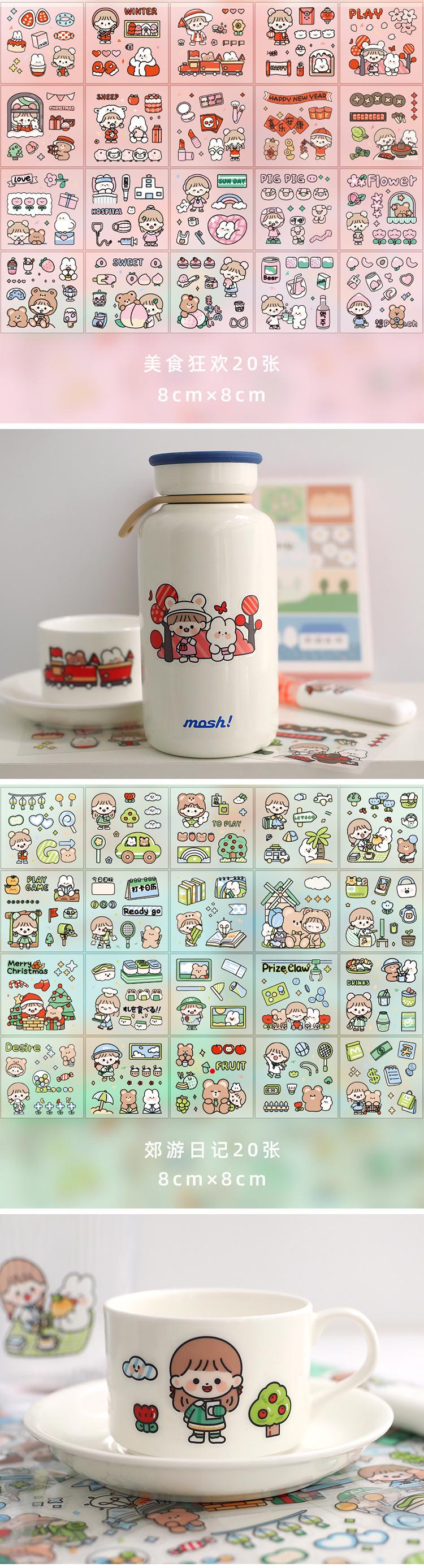 Sticker papelería pp en caja Set de Stickers caricatura lindo decoración de cuenta de mano material sticker impresión sticker de gelatina