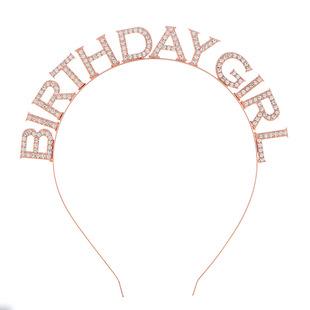 Diadema de cumpleaños de moda de estilo coreano, diadema de aleación con letras de cristal, accesorios para el cabello, feliz cumpleaños |
