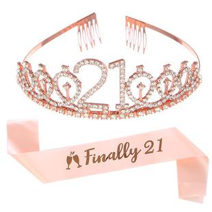 ES MI CUMPLEAÑOS Corona Correa de hombro Cinturón de ceremonia Cinturón con purpurina Conjunto Tocado de fiesta Cinturón de corona |