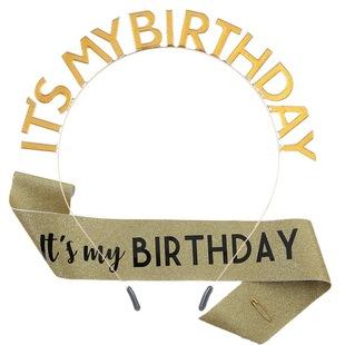 Nuevo color ES MI CUMPLEAÑOS diadema con letra correa de hombro cinturón de etiqueta conjunto para cumpleañera |