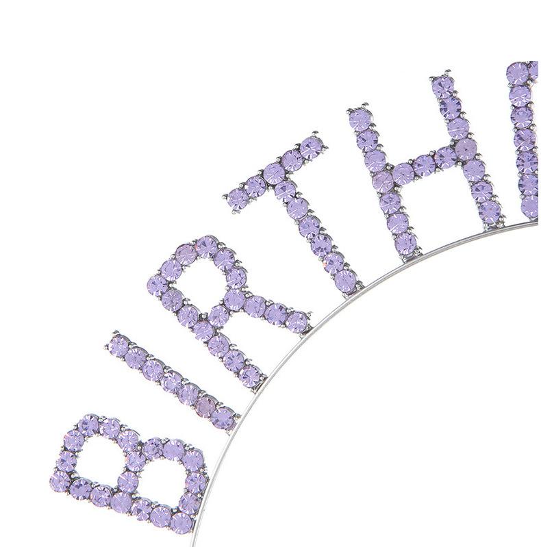 Nueva y moderna diadema con corona de cumpleaños con diamantes de imitación morados, correa para el hombro, cinturón de etiqueta, 2 piezas, diadema para cumpleañera |