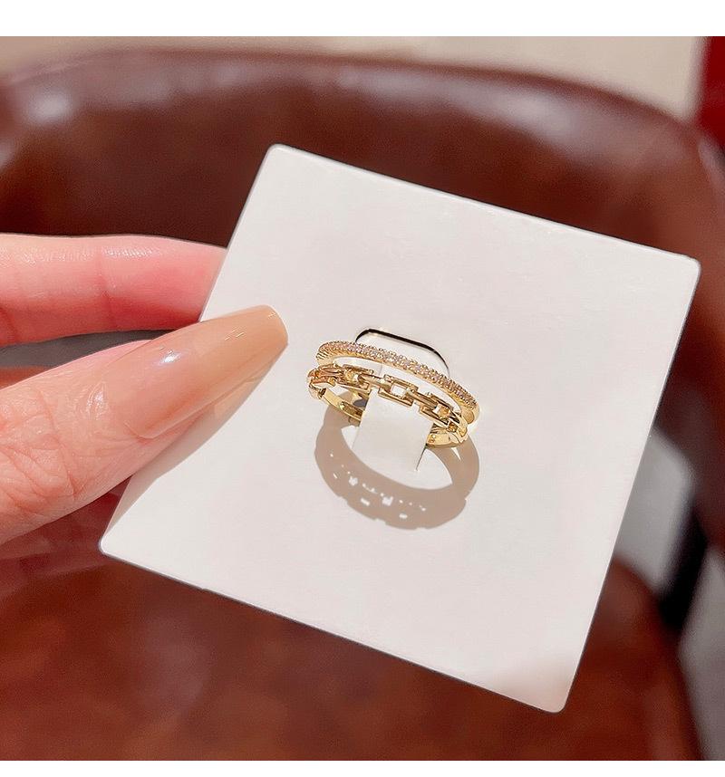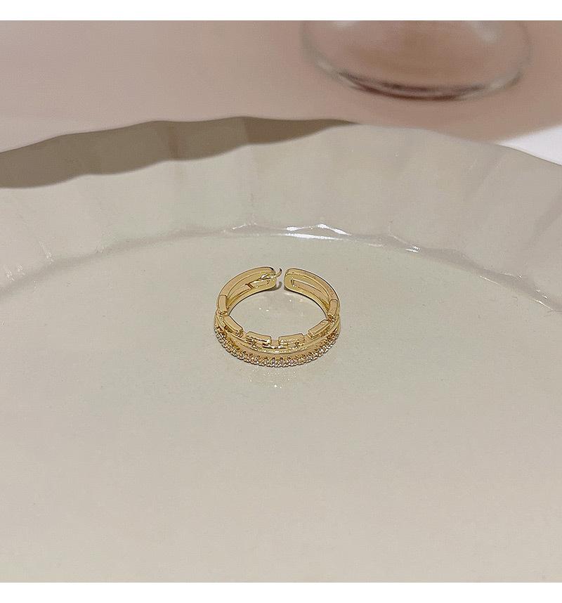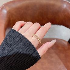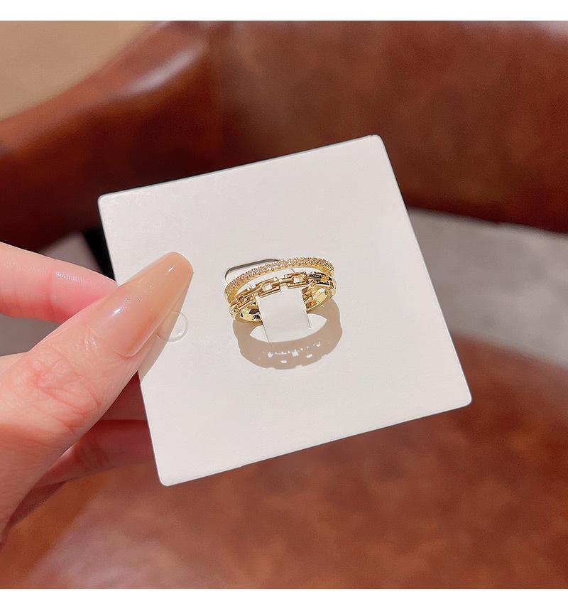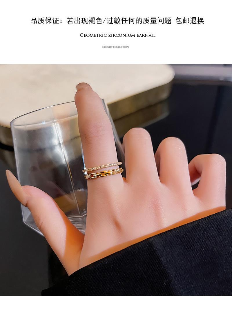 Anillo de circonita de doble capa, de diseño de alta gama, ligero y moderno, para mujer, con temperamento versátil y apertura ajustable.