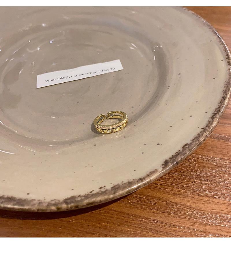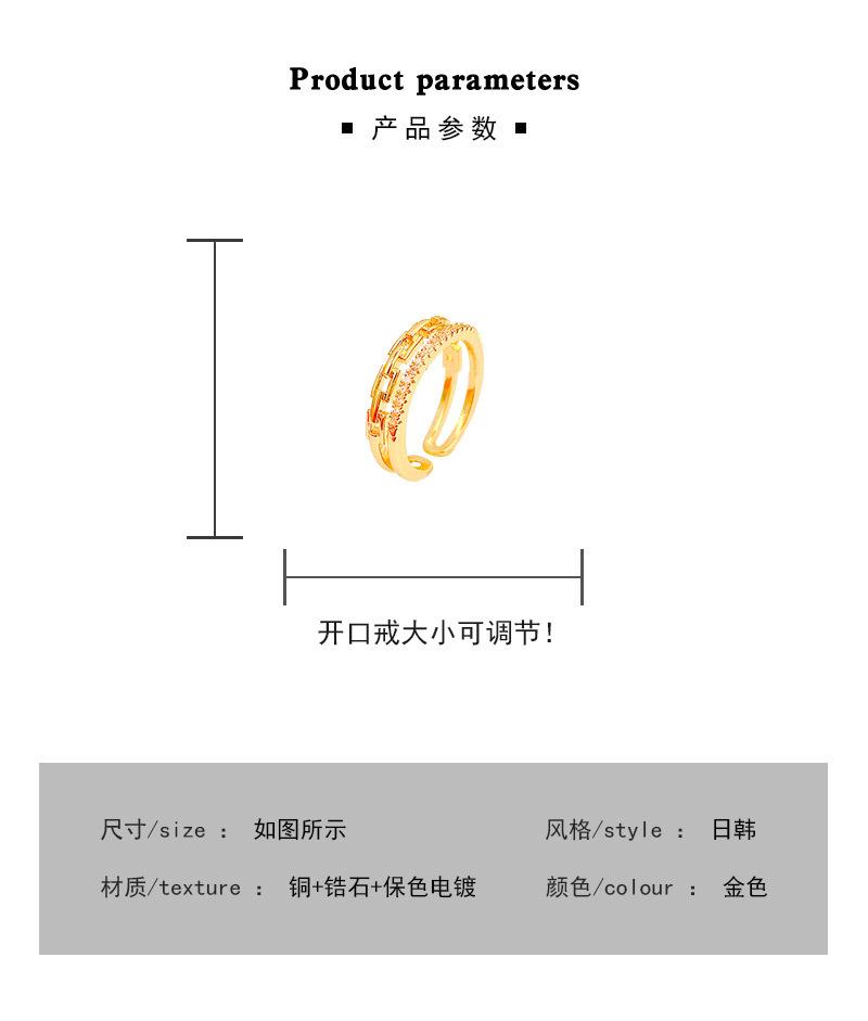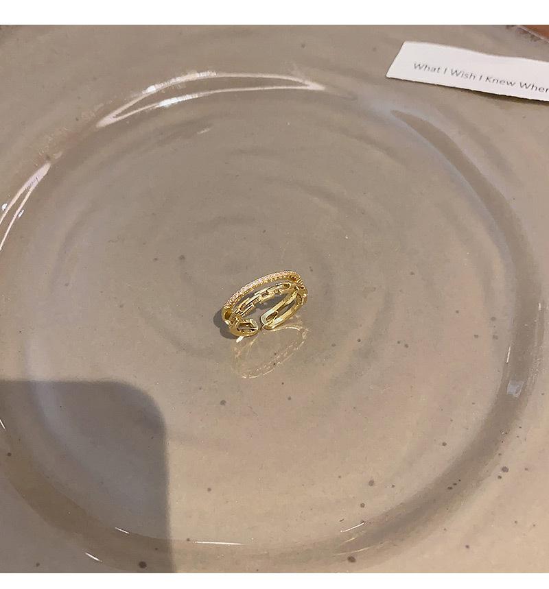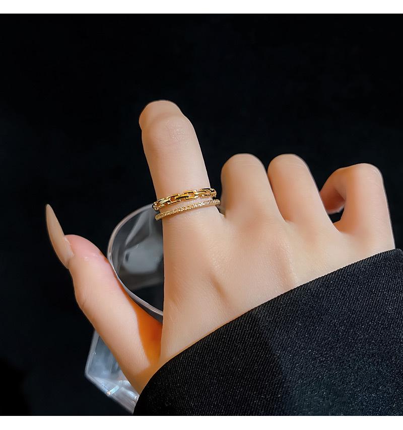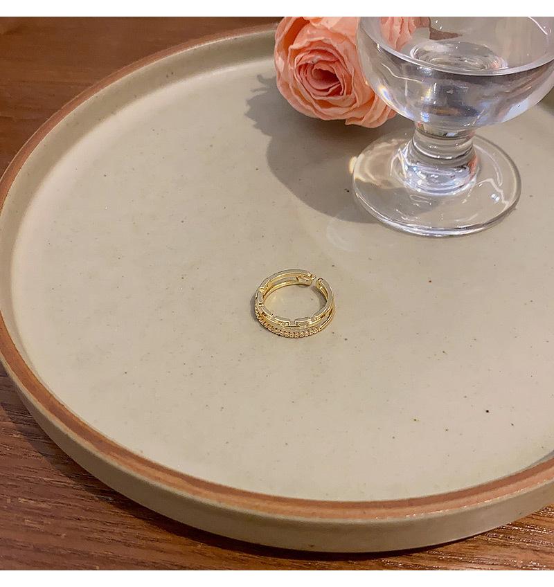 Anillo de circonita de doble capa, de diseño de alta gama, ligero y moderno, para mujer, con temperamento versátil y apertura ajustable.
