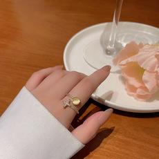 Nuevo anillo de camelia con circonita fresca pequeña de Corea para mujer, diseño de alta gama, apertura ajustable para el dedo índice.