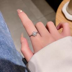 Nuevo y versátil anillo de copo de nieve de circón de Corea del Sur para mujer, un anillo ligero de lujo con el mismo estilo de celebridad de Internet, joyería de mano.