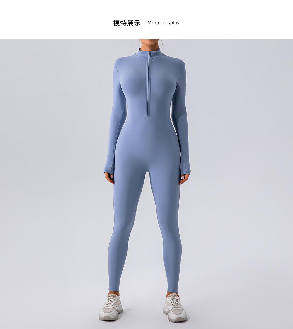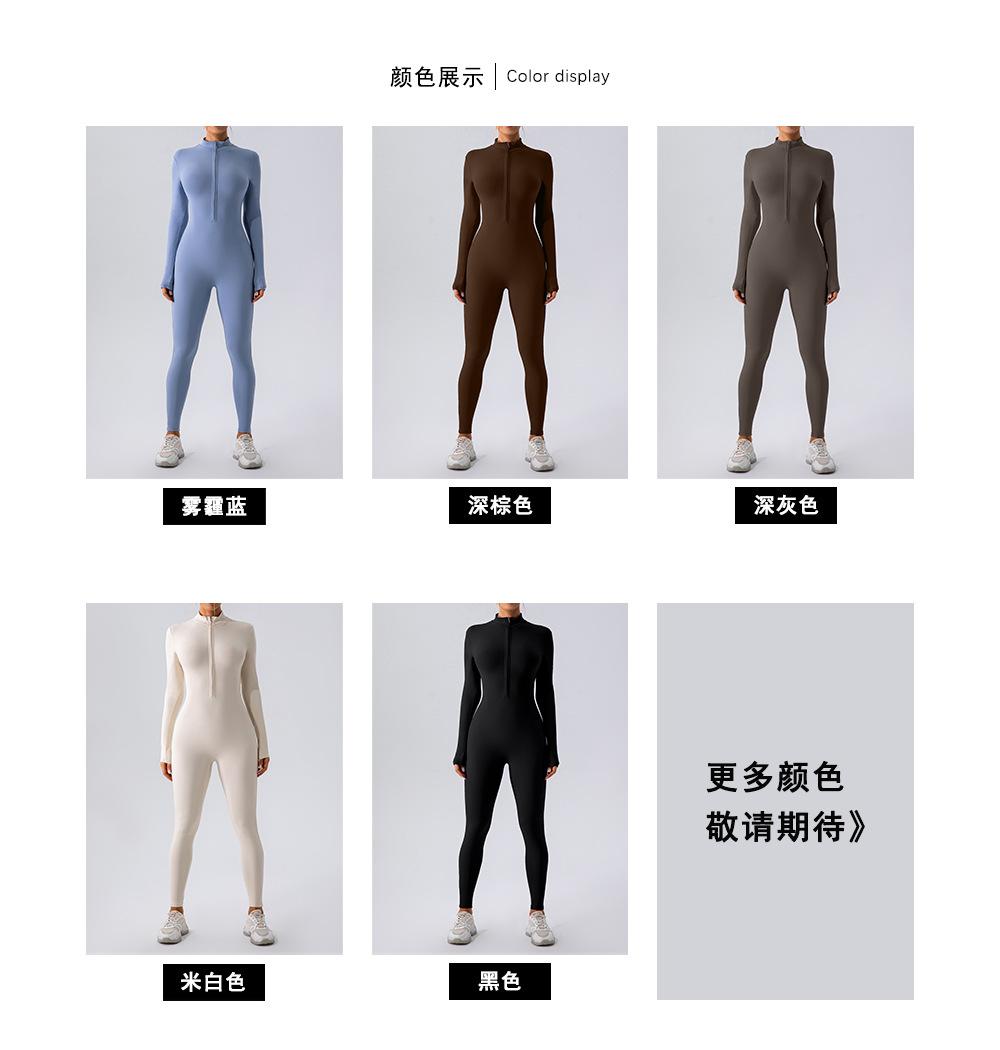 Mono de yoga de manga larga con cremallera color nude para mujer, mono de una pieza para entrenamiento deportivo y fitness, baile, estilo europeo y americano
