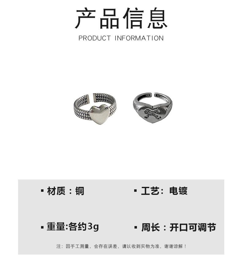 Anillo de lazo de amor para mujer, estilo retro frío, desgastado, estilo nicho, anillo abierto en forma de corazón, famoso en Internet.