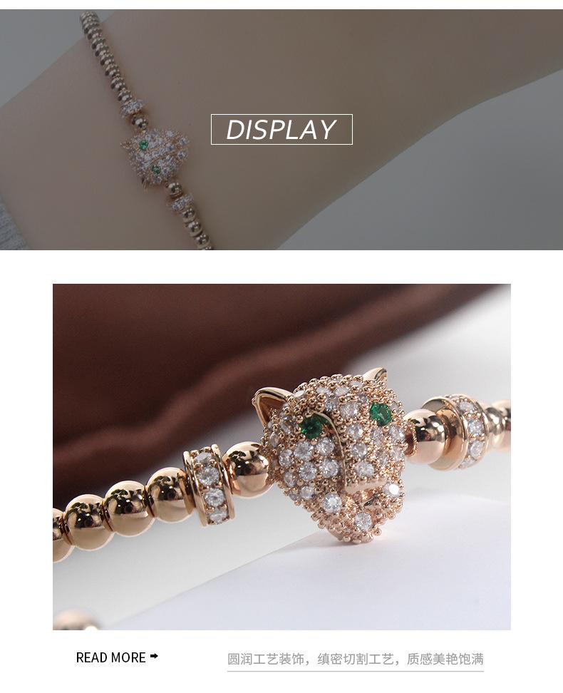 Pulsera de circón moda de mujer pulsera simple de cristal con cabeza de leopardo joyería artística de diamantes completos al por mayor