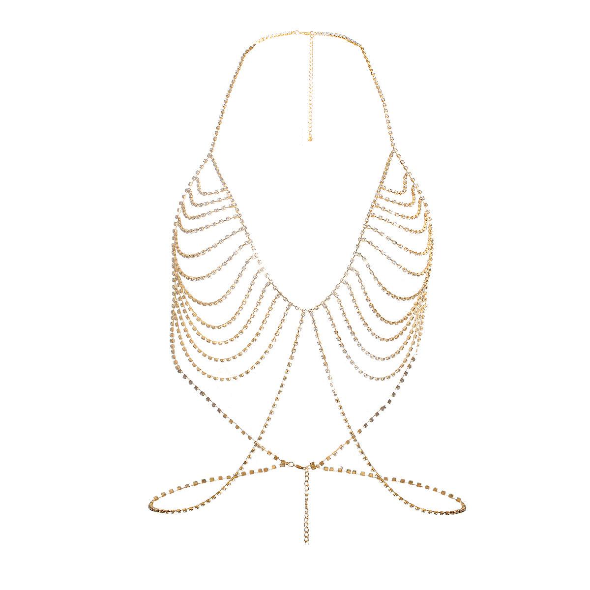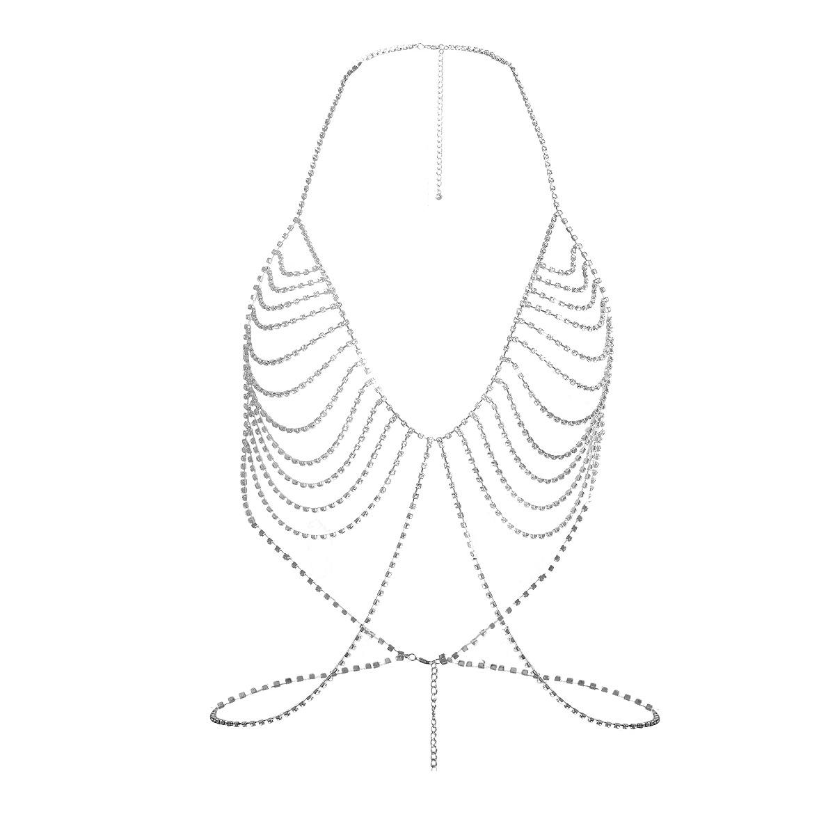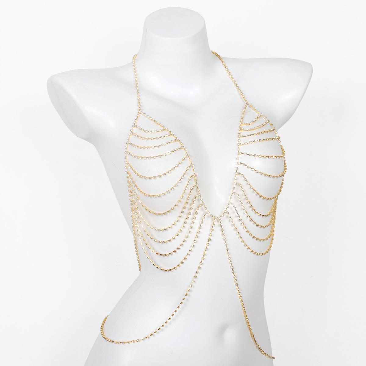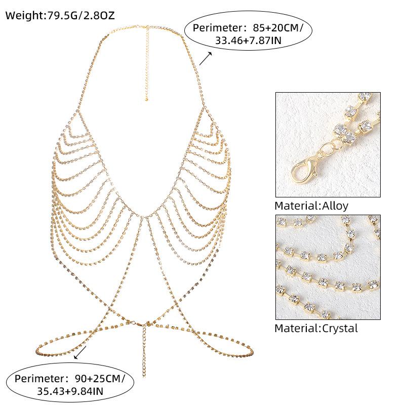 Cadena corporal nueva de diamantes de imitación transfronteriza para mujer, estilo de club nocturno europeo y americano, sexy, exagerada, cadena corporal para bikini