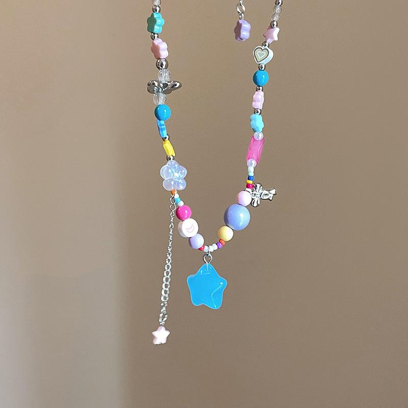 Collar de Estrella con Cuentas Coloridas con Sentido del Diseño de Verano de Nicho para Mujer, Estilo Dulce Cool, Accesorios de Celebridad de Internet, Cadena Clavicular Spice Girls