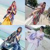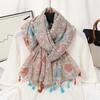 Nueva bufanda de algodón y lino estilo étnico retro con estampado geométrico de flores pequeñas, chal de viaje a la moda con protección solar para mujer
