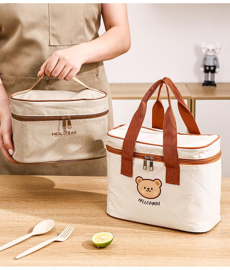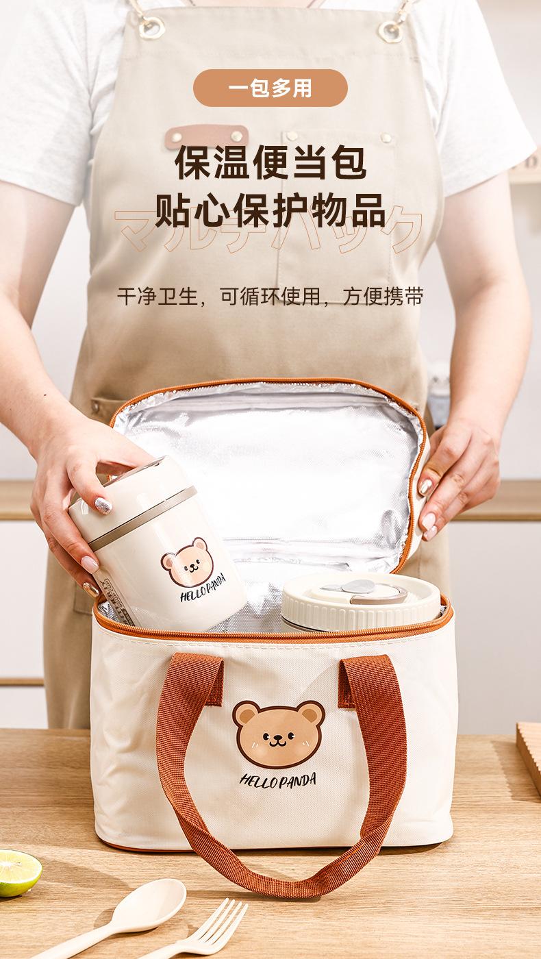 Bolsa de almuerzo con aislamiento de oso de dibujos animados, gruesa, de gran capacidad, portátil, para mantener la frescura, bolsa de almuerzo portátil, bolsa de aislamiento para estudiantes de trabajo