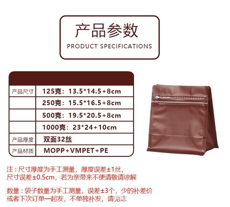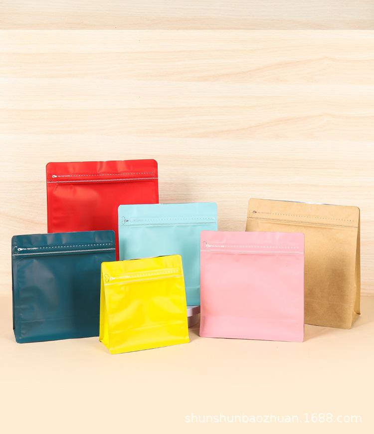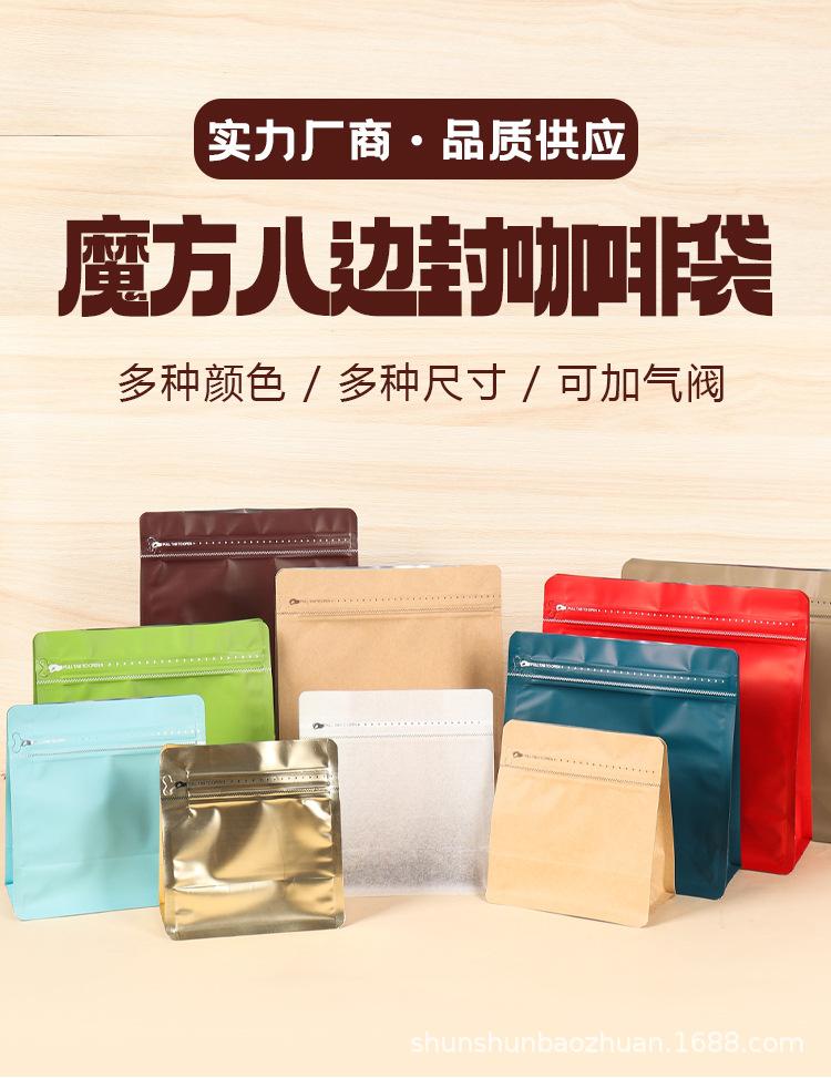 Bolsa de Café Sellado por Ocho Lados Lámina de Aluminio Cierre Ziploc Stand-Up Bolsa Universal para Empaque de Alimentos Personalizada Té Autosellable Bolsa para Granos de Café