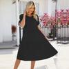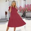 Vestido de primavera y verano 2024 con cuello redondo, manga corta, plisado y cordones, color liso, para comercio exterior transfronterizo europeo y americano de Amazon