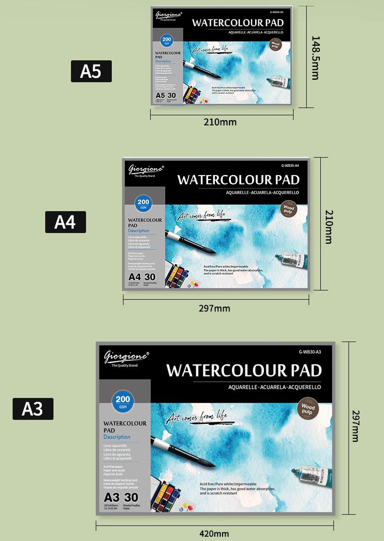 A3 watercolor 200g single-sided sealant, A4 watercolor 200g single-sided sealant, A5 watercolor 200g single-sided sealant