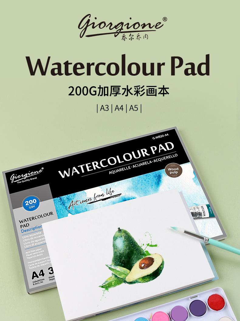 Libro de acuarela Giorgione de 200 g, pegamento sellador de una sola cara, papel de acuarela para estudiantes de arte profesional, pintura especial, viaje