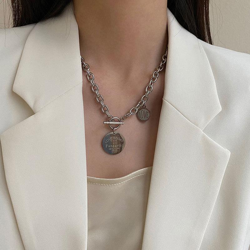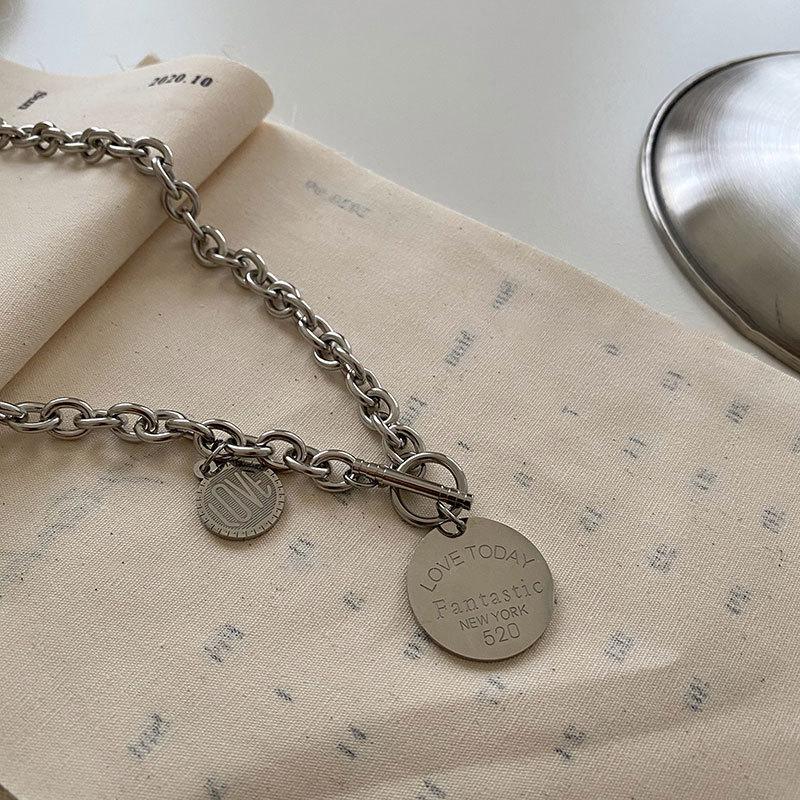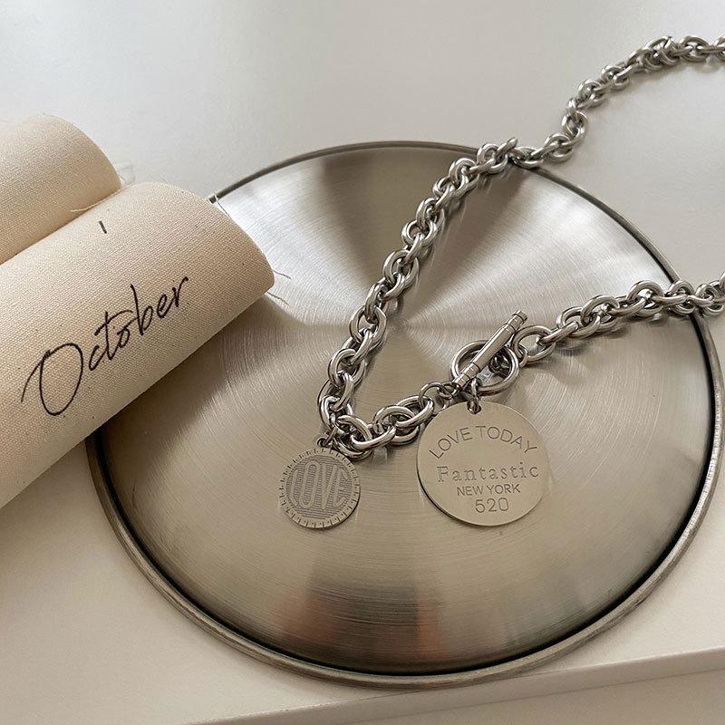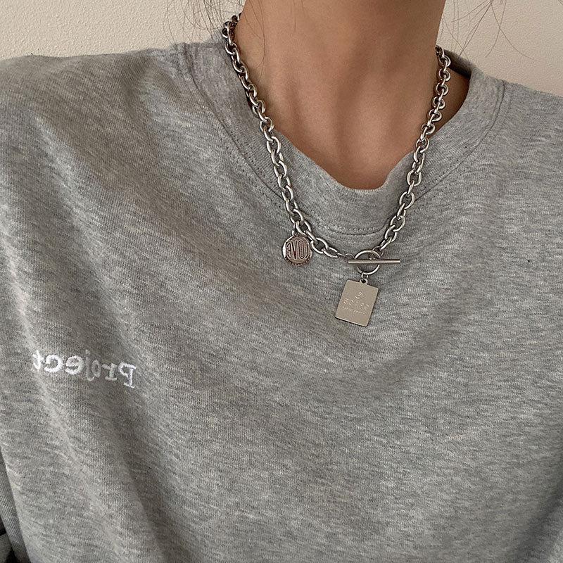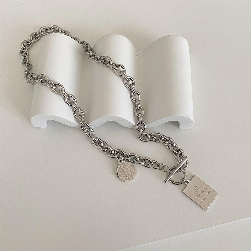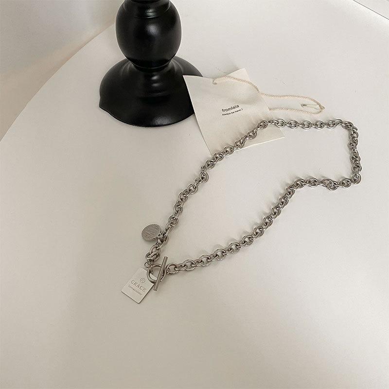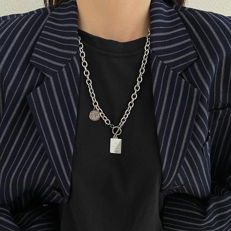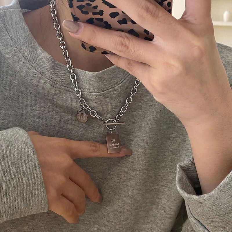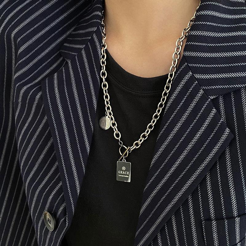 Collar con diseño de nicho de lujo, ligero y de acero de titanio para mujeres y hombres, moderno collar de estilo hip hop con cadena de clavícula y accesorios largos de lana sencilla.