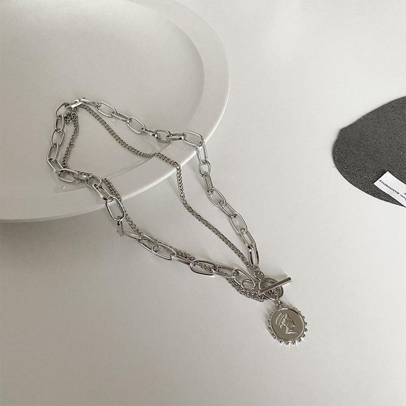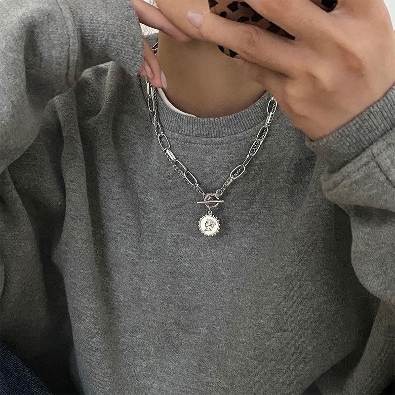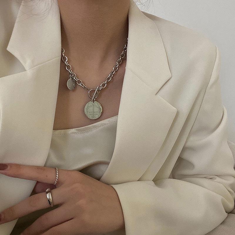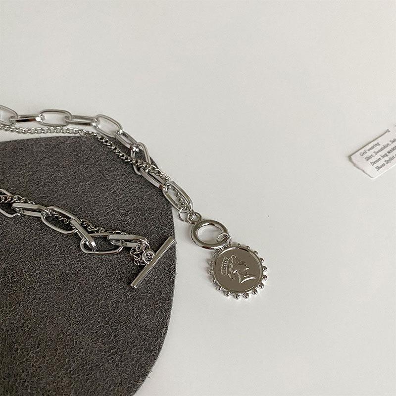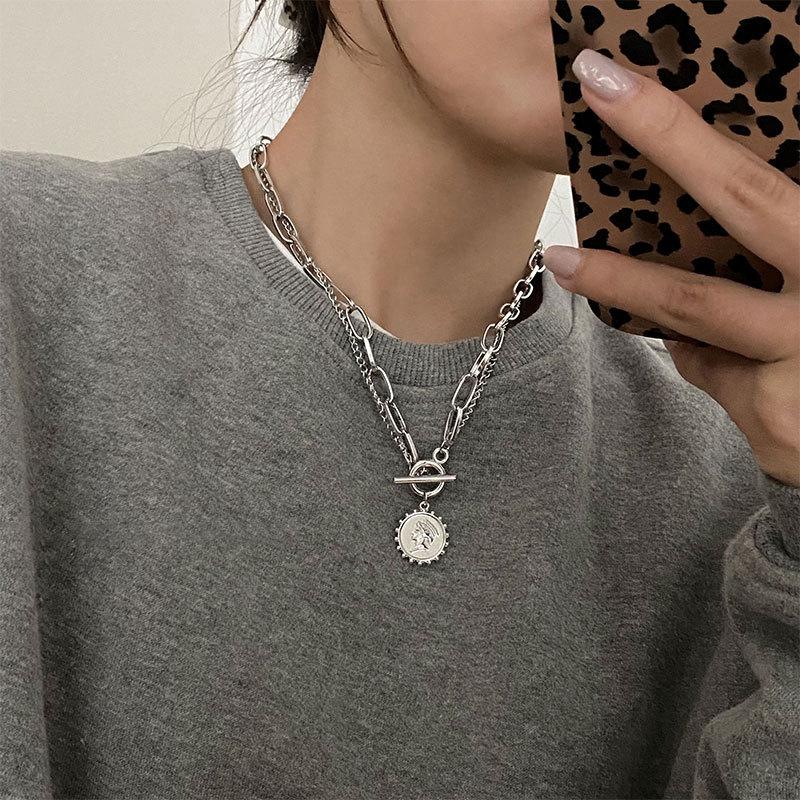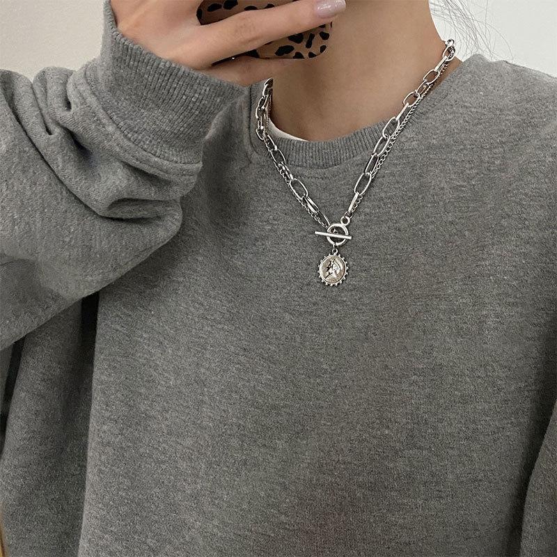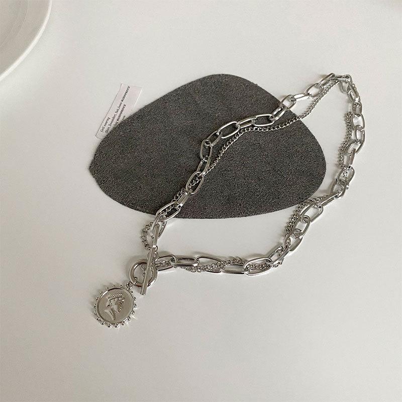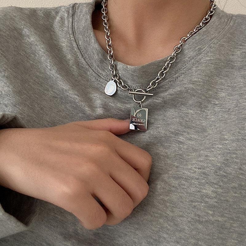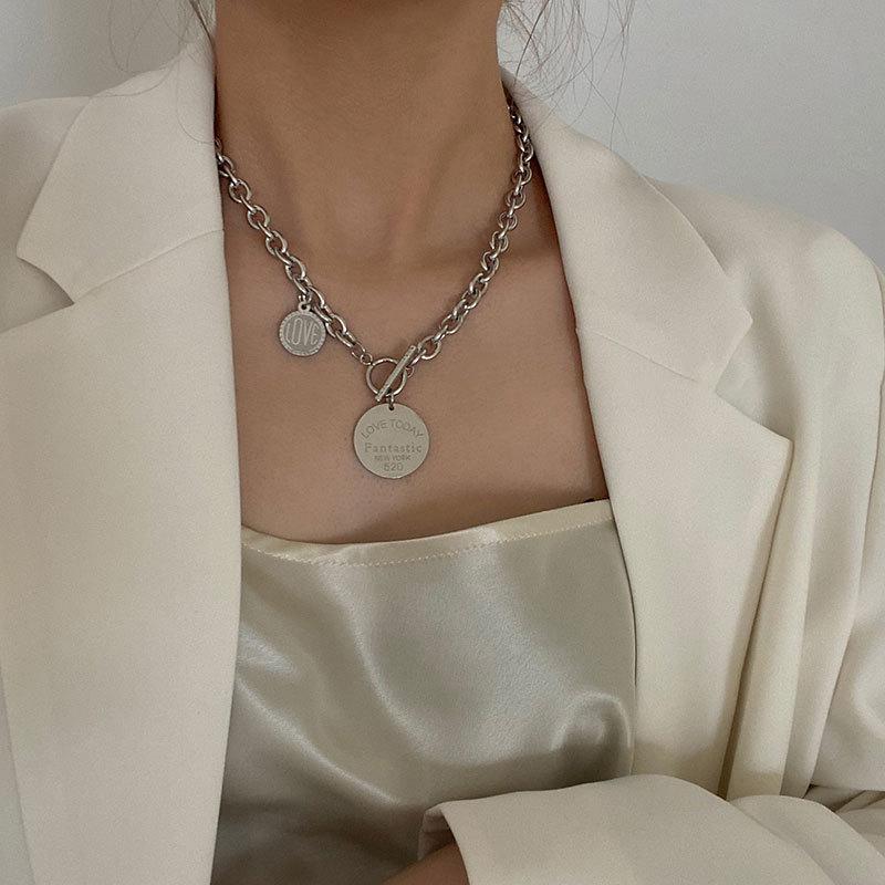 Collar con diseño de nicho de lujo, ligero y de acero de titanio para mujeres y hombres, moderno collar de estilo hip hop con cadena de clavícula y accesorios largos de lana sencilla.