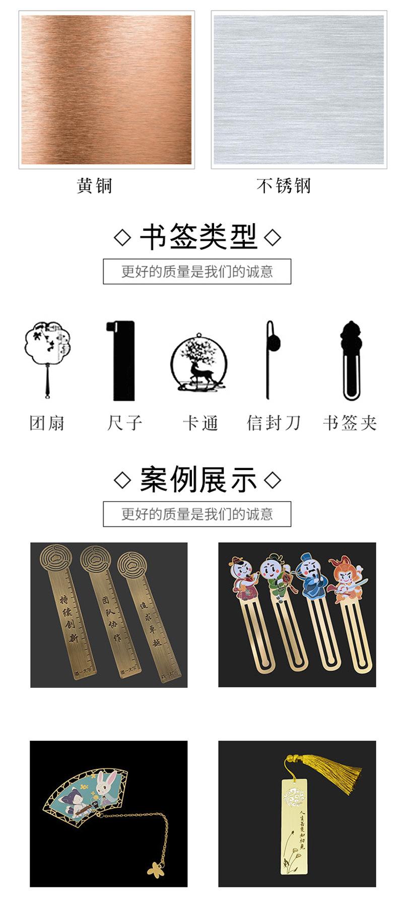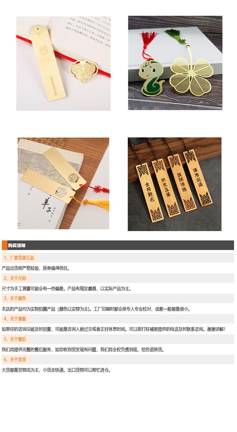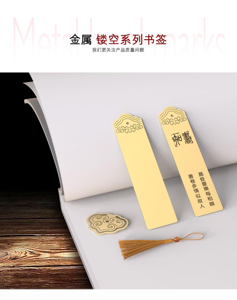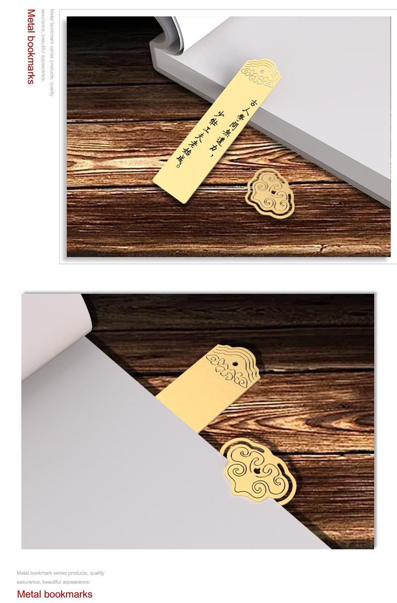 Marcapáginas hueco de latón antiguo, apto para caja de regalo creativa de estilo chino, clip Ruyi, grabado láser de metal creativo.