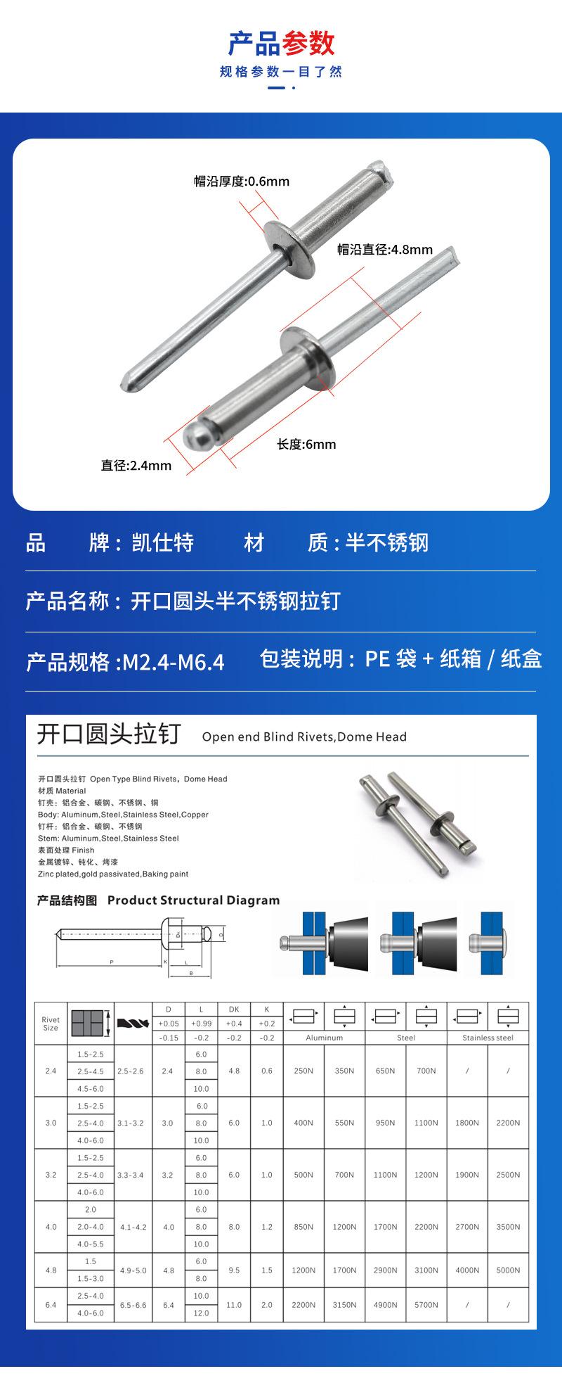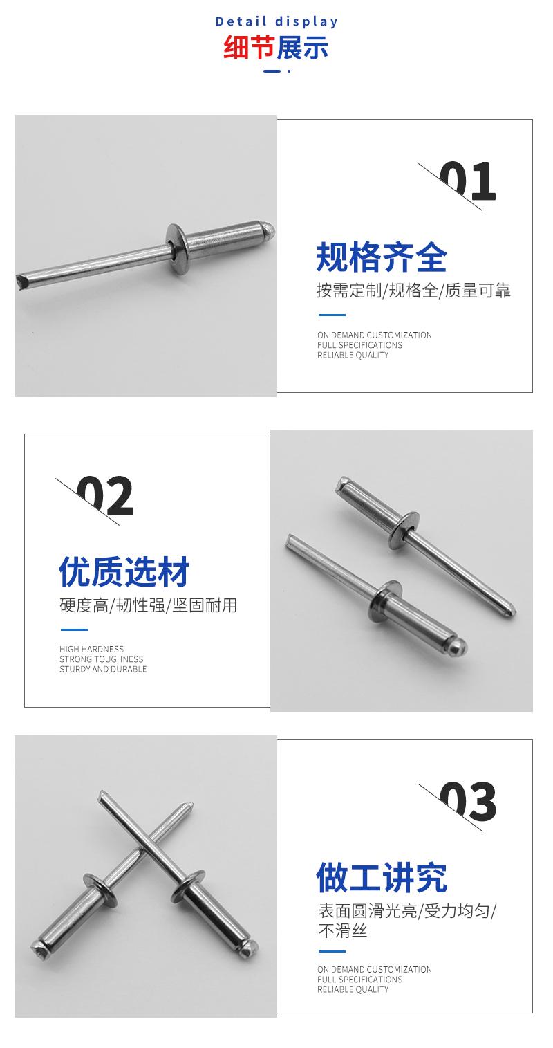 Remaches de Acero Inoxidable 304, Remaches de Cabeza Redonda Plana Tipo Abierto, Clavos de Cabeza Cilíndrica Extraíbles con Núcleo Semiacero Estándar Nacional Gb12618