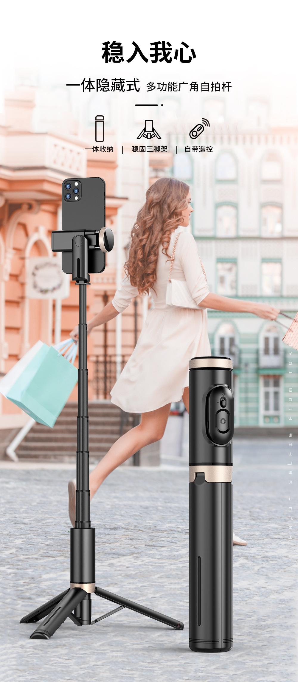 Q12s luz de relleno giratoria oculta integrada trípode palo selfie Bluetooth (poste de aleación de aluminio)