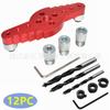 Juego: 12 piezas (un posicionador, guía de tuerca de 6 mm, 8 mm, 10 mm, broca helicoidal de tres puntos, un anillo limitador de broca, dos llaves L pequeñas)