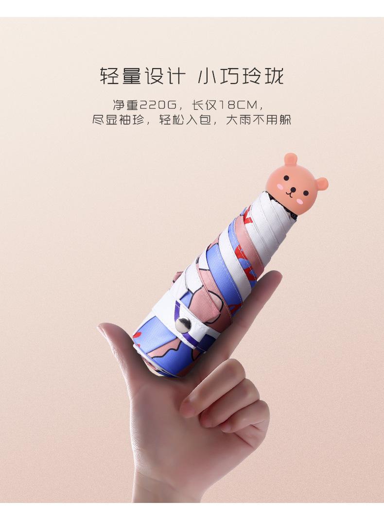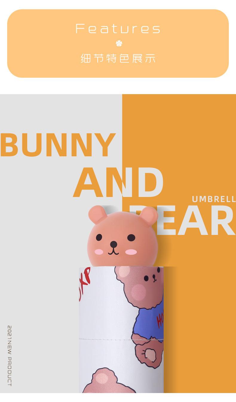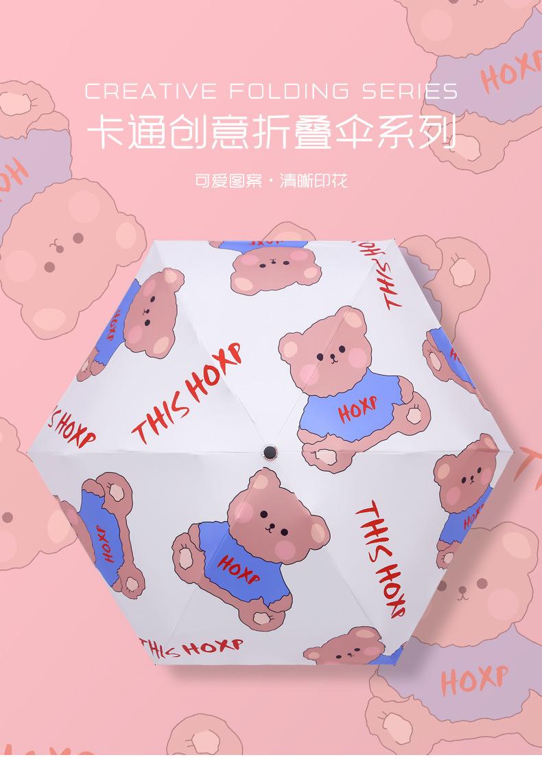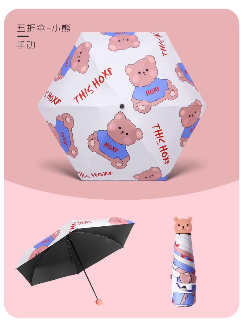 Paraguas parasol plegable al 50% al por mayor, mango de oso lindo para mujer, goma negra, protector solar UV, paraguas plegable para estudiante