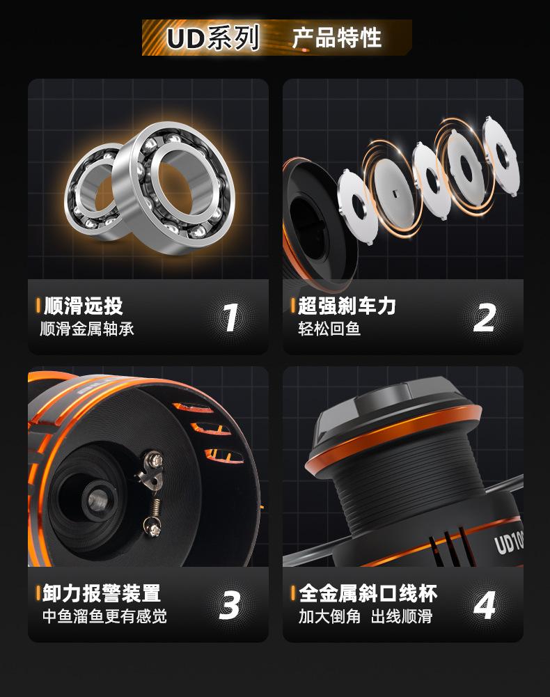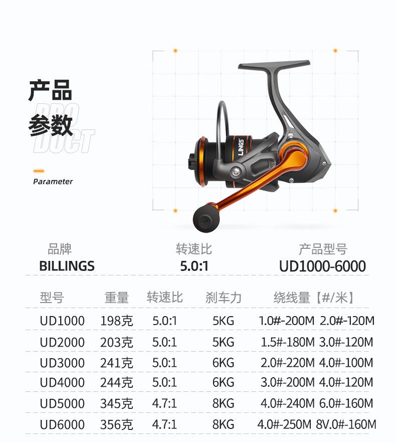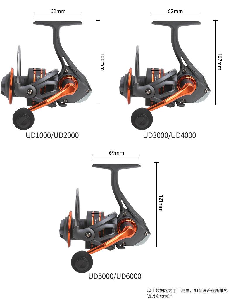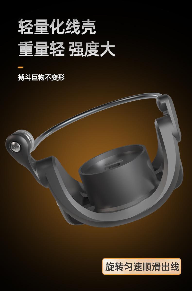 Características del producto: Fuerza de frenado súper de 8 kg, pastillas de freno multicapa, sin miedo a objetos grandes, diseño biselado de copa de línea metálica para salida suave de la línea, lance más largo sin dañar la línea, husillo de guía de acero inoxidable, resistente al desgaste y duradero, tiempo de uso más prolongado, alto Hecho de material compuesto de nailon de alta resistencia, el pomo de EVA proporciona una sensación de operación cómoda, y los lados izquierdo y derecho del brazo basculante se pueden intercambiar para facilitar la operación.